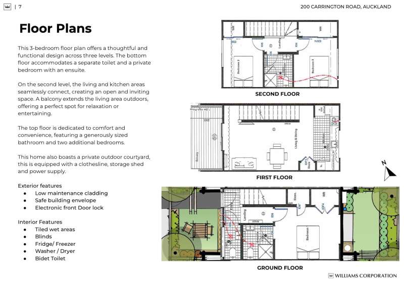 Welcome to 200 Carrington Road, Mt Albert! These brand-new townhouses combine contemporary design with outstanding condition, featuring 2 bedrooms and 2 bathrooms for comfortable and convenient living. Upon entry, you'll find an open-plan dining area that flows into the lounge, creating a spacious and inviting atmosphere. The modern kitchen is fully equipped with essential appliances, including a dishwasher, rangehood, oven, and cooktop. The interior is in pristine condition, with a mix of carpeted floors and stylish tiles. Additional amenities include a refrigerator/freezer, microwave, electric car charger, clothesline, storage/bike shed, and a washer/dryer. The home is heated by a heat pump to ensure year-round comfort. The three-level layout offers ample space for relaxation and privacy. The well-sized bedrooms are complemented by bathrooms that feature separate bathing and toilet areas. The master bedroom even boasts its own ensuite for extra convenience. The exterior of the property features a sleek brick finish, and the condition remains excellent. Enjoy views of the urban landscape from the comfort of your home, and benefit from off-street parking for you and your guests. Situated in a highly desirable neighborhood, these townhouses are conveniently close to Mount Albert Train Station, the Carrington Road bus stop, local shops like PAK 'N' SAVE, Gladstone Primary School, and UNITEC Institute of Technology & Sports Centre. Enjoy the vibrancy of city life while retreating to your peaceful home. Don’t miss your chance to secure this fantastic property!