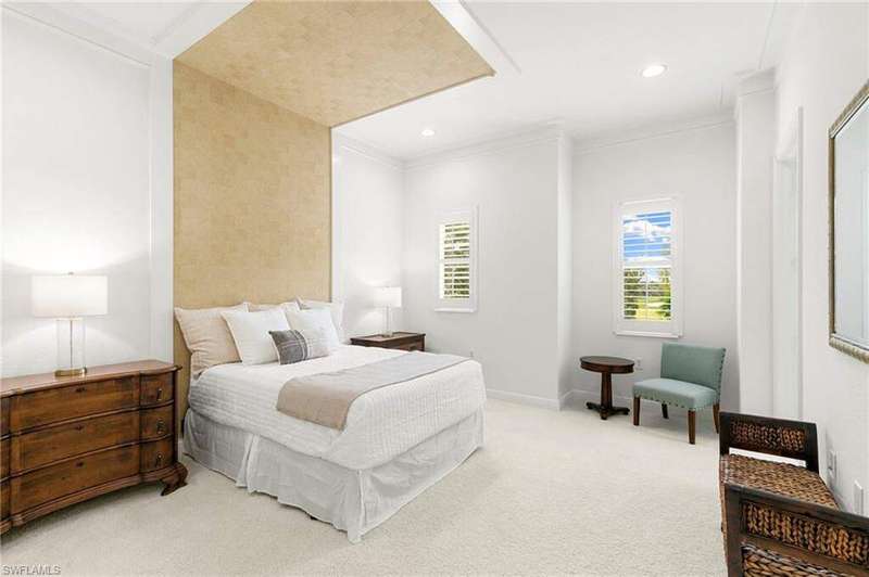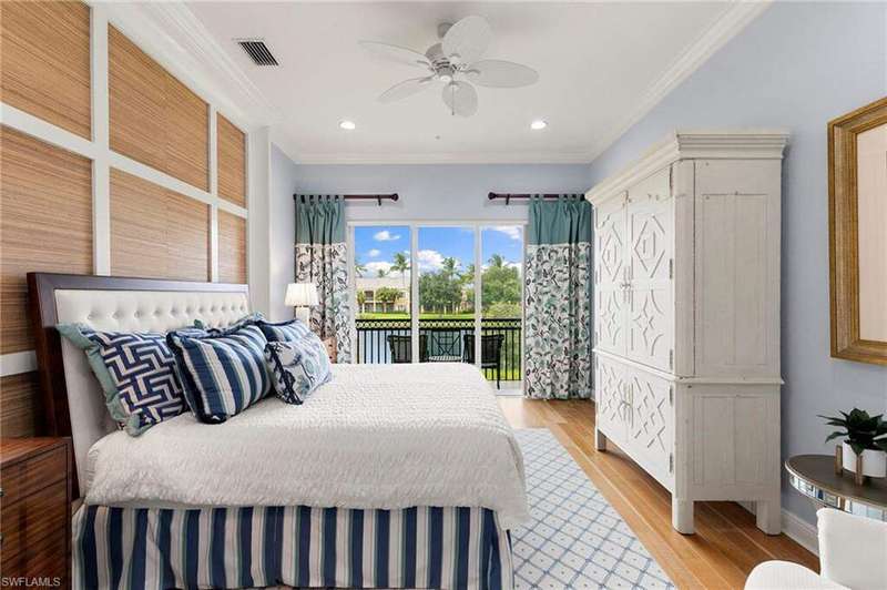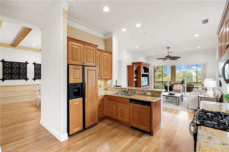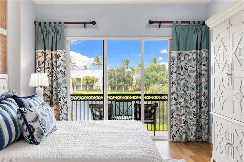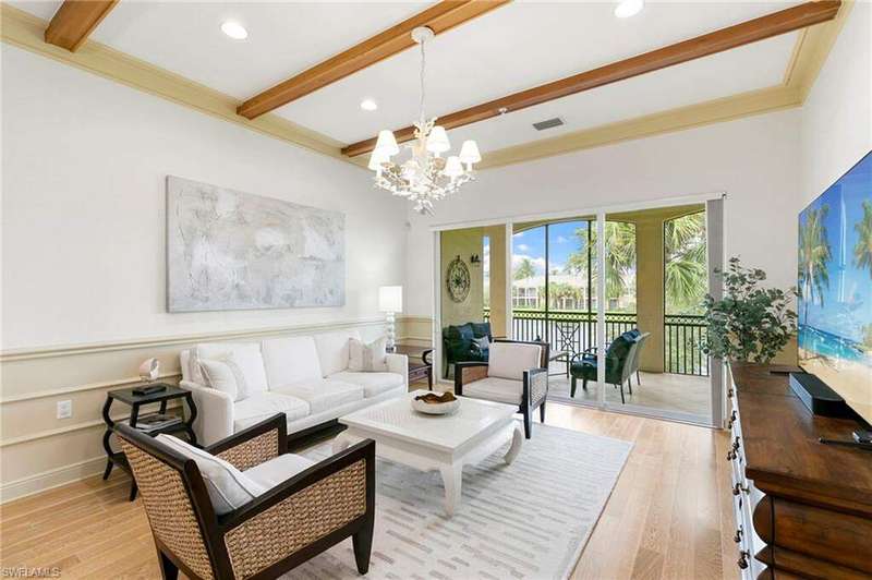 Discover refined living in this beautifully appointed three-bedroom, three-and-a-half-bath end unit, ideally located on the second floor and offering sweeping lake views along with access to exceptional community amenities. This former model has been impeccably cared for and is move-in ready, boasting a variety of high-end upgrades such as a recently installed roof, elegant marble flooring in the entryway, quality engineered hardwood, 8 foot solid-core doors, and upgraded no-see-um lanai screens. Upon entry, you're welcomed into a spacious, open-concept living and dining area that features 11-foot ceilings adorned with detailed wooden beams, intricate wainscoting, and double crown molding that adds a touch of sophistication. The primary suite is a true retreat, highlighted by a custom-built bed accent wall, California-style closets, and a luxurious bathroom outfitted with full-height mirrors. The expansive kitchen is perfect for cooking and entertaining, with granite countertops, extensive cabinetry, a breakfast bar, and a cozy nook for casual dining. A custom built-in enhances the family room, while vertical pleated shades and plantation shutters provide privacy and style throughout. The two-car garage, located on a quiet cul-de-sac, adds both convenience and privacy. Enjoy peaceful lakefront living paired with carefully designed interior details that create a perfect balance of comfort and elegance. The award-winning Fiddler's Creek community has a range of luxury amenities including a resort-style clubhouse and spa, fitness center, multiple pools, two championship golf courses (additional private membership required), tennis and pickleball courts, bocce, fine and casual dining options, and a rich calendar of social events. Optional memberships for a beach club and marina are also available.