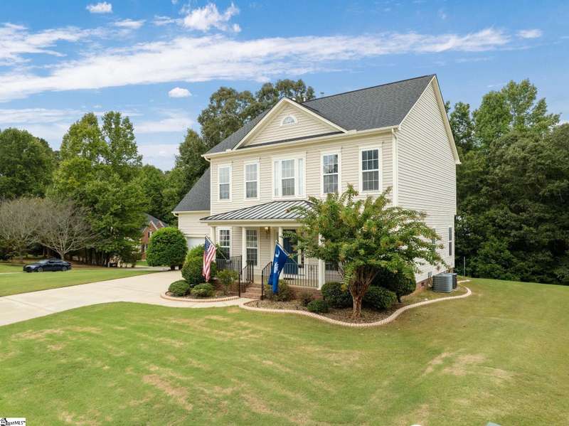 Conveniently located, zoned for award-winning Powdersville schools, and set on over half an acre that backs to a peaceful creek, 106 Armistead Lane truly has it all! Step onto the sweeping Southern-style front porch and into the foyer, where you’re welcomed by gleaming hardwood floors and 9’ ceilings. To your right, French doors open to a flexible office or formal living room; to your left, a dining room with judges panel molding sets the stage for memorable gatherings. The open-concept design seamlessly connects the spacious, light-filled living room - complete with a cozy gas fireplace - to the well-appointed kitchen. Here you’ll find abundant cabinetry, generous counter space, a center island, a pantry, and a breakfast nook overlooking the backyard. The main level also includes a guest half bath and a large walk-in laundry room. The primary suite is a serene retreat with views of the tree-lined yard. It features a tray ceiling, a spa-like ensuite bath with a soaking tub, separate shower, dual vanity, and a walk-in closet. Three additional bedrooms offer excellent closet space; the fourth can double as a huge flex room - large enough for a pool table, media setup, workout zone, or more. A bonus hobby room or library and a generous hall bath complete the upstairs. The attached two-car garage features soaring ceilings, ideal for extra shelving and storage. Outdoors, a spacious deck invites grilling, entertaining, or simply relaxing while enjoying the private wooded backdrop and creek. Community amenities include a pool, playground, and more. Plus, this home comes with a transferable termite bond and pre-paid lawn fertilizer treatments for the rest of the year. With award-winning schools, a convenient location close to shopping and dining, and a setting that feels like a retreat, 106 Armistead Lane is a must-see. Schedule your showing today! Contact Ashley Steigerwald with Wilson Associates at 864-907-0601 or ashley@wilsonassociates.net.