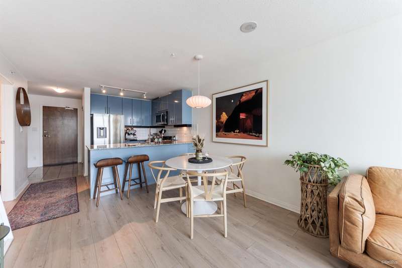 Experience different living in this spacious one-bedroom plus den unit at the Esplanade at the Pier. Enjoy abundant natural light and stunning sunrises with southeast exposure. Located within walking distance to Lonsdale Quay, restaurants, and amenities, you’ll have everything at your fingertips. Perfect for those who live on the North Shore and work downtown, the SeaBus is just a stroll away. This concrete building includes one parking space, one storage locker, and the added benefit of air conditioning and gas included in the strata fee. Enjoy Pinnacle Hotel amenities like a pool and gym for a nominal fee, and take in the breathtaking water views from your window.