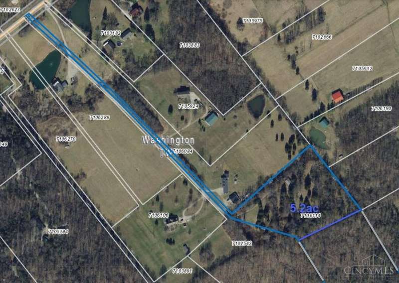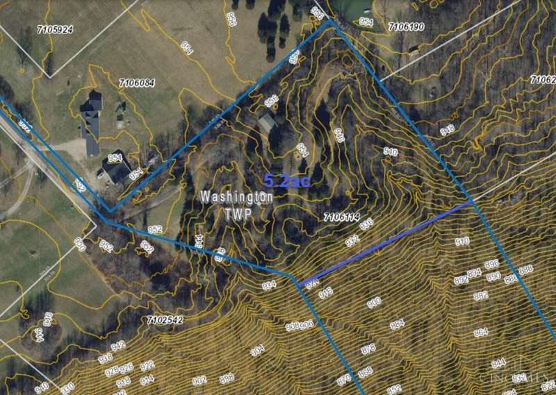 Secluded and Spectacular 5.2ac of mostly wooded but partially cleared rolling ridgetop overlooking Todds Fork of the Little Miami River Valley. Would make an awesome build site for a secluded home in the woods with river valley views or great camping or recreational property as well. The lot sits at the end of a shared driveway with Water and Electric available at the front of the lot. There is a good gravel driveway in place leading back to a 24x36 garage with concrete floor. Seller owns adjacent acreage and is keeping 14ac of current parcel so final Survey split needs completed prior to sale with possible option to add 2-3 acres of hillside giving access down to the river.