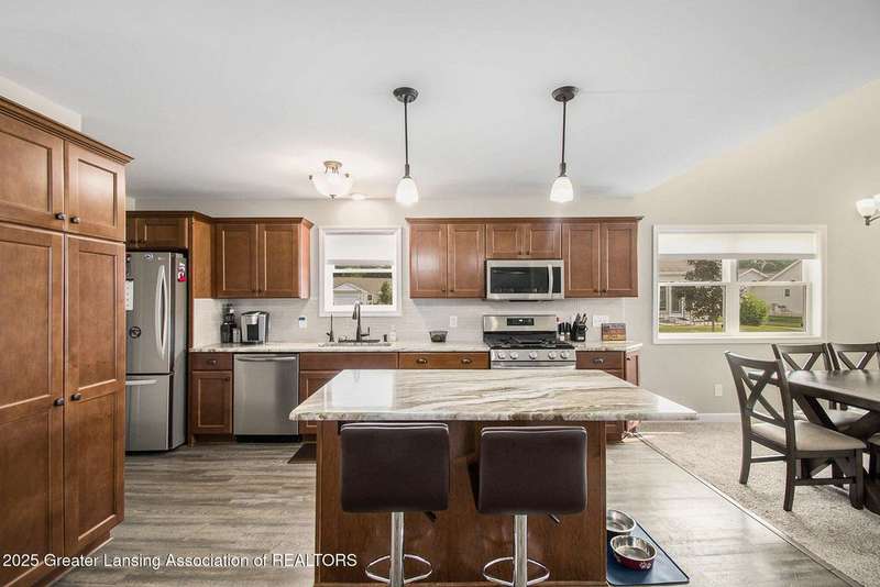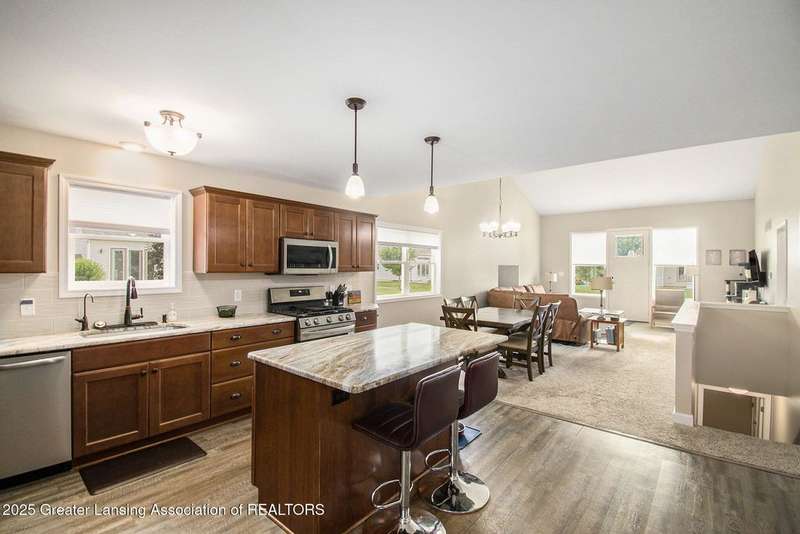 Welcome to 4012 Eastbridge Circle - a beautifully cared-for 3-bedroom, 3-bath home nestled in the highly desirable Stockbridge neighborhood, where modern comfort meets everyday convenience. From the moment you enter, you'll be greeted by a bright, open floor plan designed for both relaxation and entertaining. The living room's vaulted ceiling enhances the spacious feel, creating a warm and inviting atmosphere perfect for cozy evenings or lively gatherings. At the center of the home, the kitchen stands out with its granite-topped island - ideal for meal prep, casual dining, or conversation while cooking. Stainless steel appliances bring a sleek, modern touch, and the thoughtful layout makes this kitchen as functional as it is beautiful. Convenience continues throughout the main level with a first-floor laundry room and an on-demand hot water heater for effortless day-to-day living. The private primary suite features a full bath and walk-in closet, while a second bedroom and full bath offer comfortable accommodations for guests or family. The finished lower level provides exceptional versatility, complete with an additional bedroom and full bath, it's perfectly suited for a home office, gym, or guest suite. Outdoor lovers will appreciate being just a short walk from the scenic Lakeland Trails, while downtown Stockbridge's restaurants, shops, and community events are also within easy reach. Commuters will enjoy the tranquil setting paired with convenient access to both Lansing and Jackson. An attached 2-car garage provides added convenience and protection for your vehicles. Don't miss your chance to own this exceptional property that checks every box- stylish, functional, and ideally located. Schedule your private showing today!