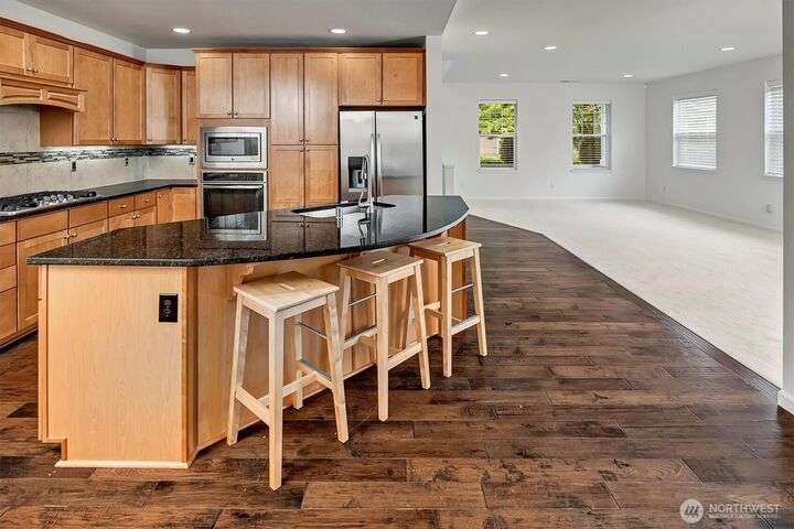 Enjoy the best in suburban living in this stylish Craftsman home by acclaimed DR Horton in beautiful Cavalla, just minutes to shopping and easy freeway access. The coveted Issaquah School District serves this neighborhood. Sip your morning coffee on the charming front porch, that welcomes you to the sunlit two story entrance. Rich dark hardwood flooring flows throughout much of the main floor. The interior has been beautifully refreshed with high grade neutral carpeting and new paint. The large island in the kitchen can seat four and has granite counters. Entertain in style on the spacious covered deck as you enjoy an evening barbeque. Four generous bedrooms including a stunning primary suite and large bonus room complete the home!