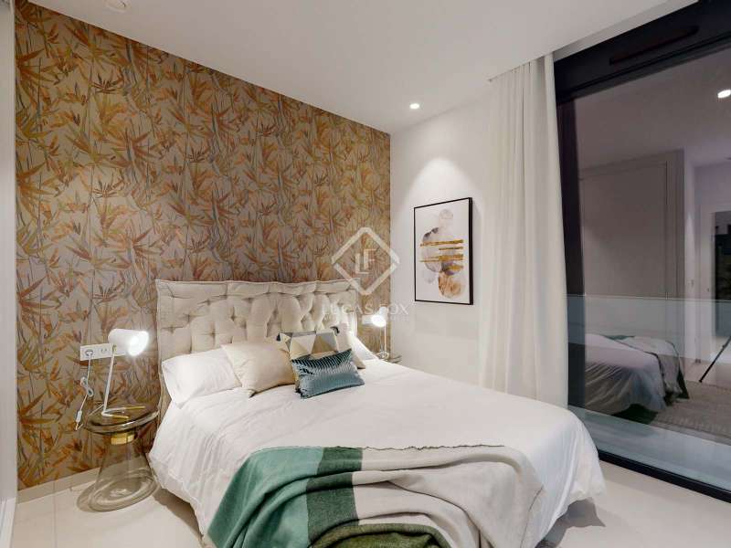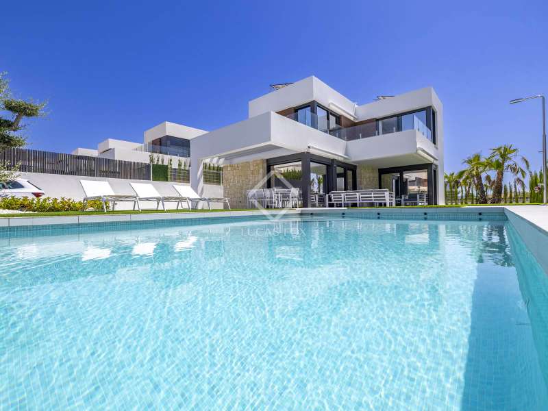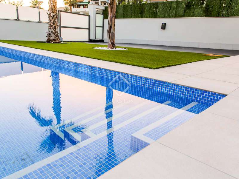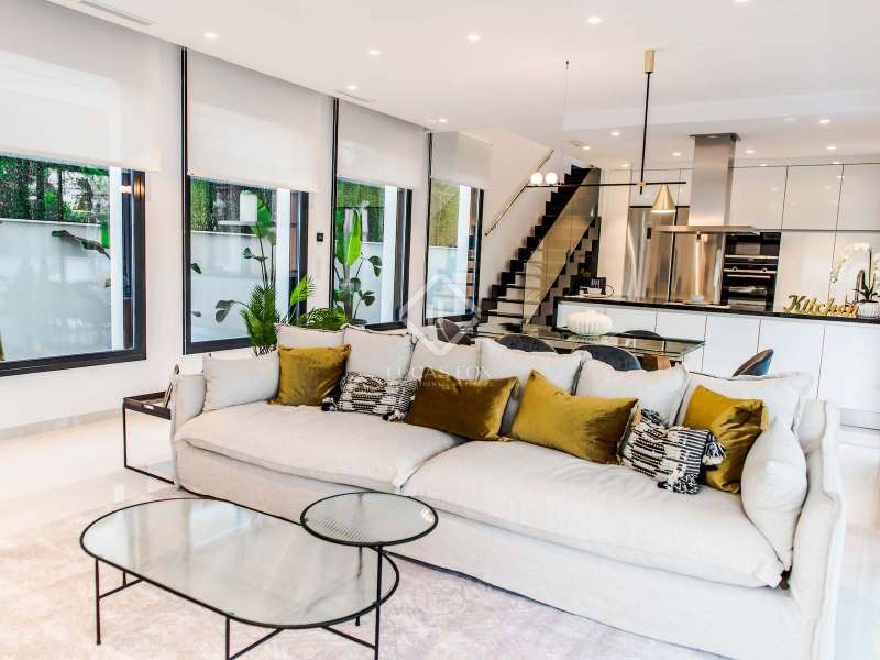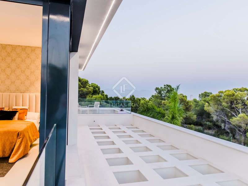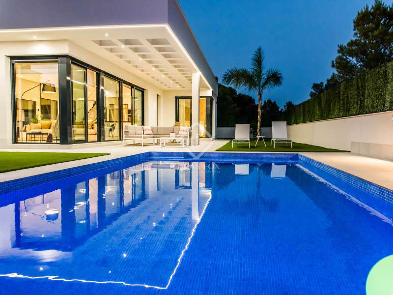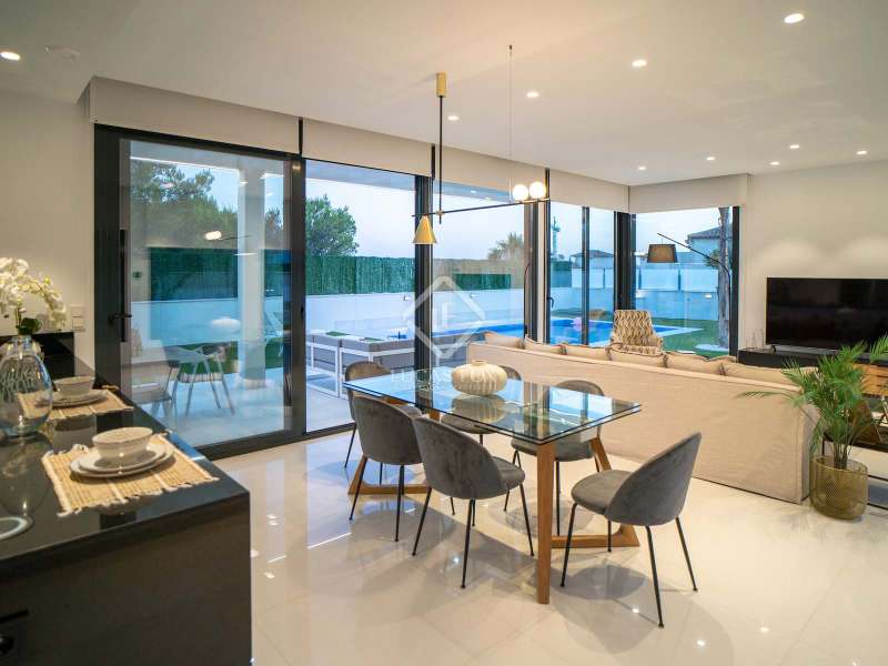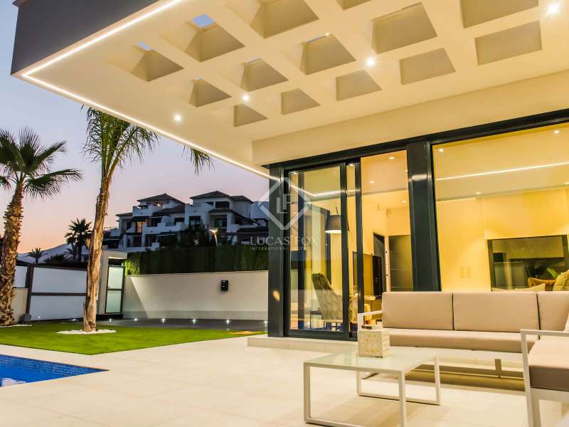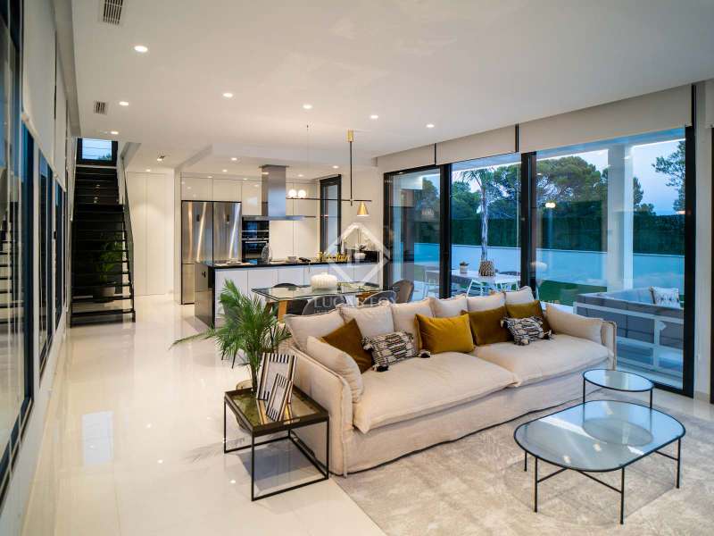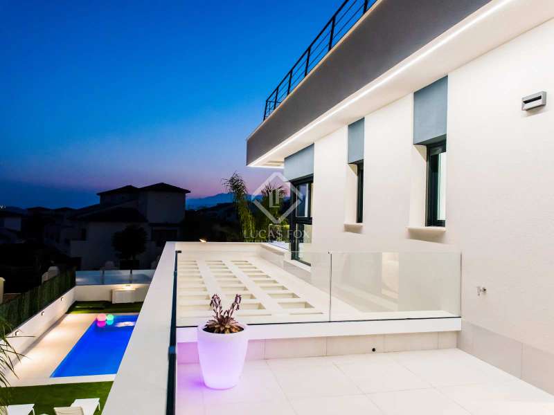 This property is ideal for buyer seeking a comfortable, modern home in safe and pleasant surroundings. The house is distributed across three floors. On the ground floor there is an open kitchen and spacious living room with large windows and automated shutters and direct access to the terrace with chill-out area, barbecue and the swimming pool. Also here you may find a guest bedroom with an access to the garden and a bathroom. On the first floor we have two bedrooms with fitted wardrobes and en-suite bathrooms. Both rooms have magnificent views and access to a private balcony. On the top floor there is a solarium with unforgettable sea and mountain views and preinstallation for solar panels and satellite TV. In addition, the house has a security system, reinforced doors and windows and automatic shutters with anti-lever system, Aerothermia system and solar panels for hot water, all designed for maximum comfort and tranquility. Outside there is garden with a covered terrace, barbecue area and a saline swimming pool. The house was built in 2020 using the latest energy and insulation technologies and is very cost efficient. It has energy certificate type A. The property was designed with special care and the materials chosen are of excellent quality; a house just waiting to be a home. Ideal for the most discerning clients. Please call us to arrange a viewing.