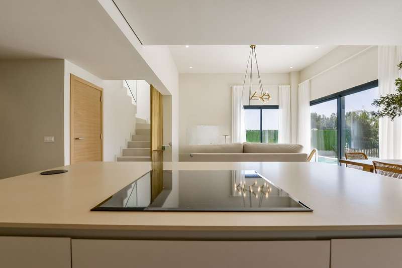Houses for sale in Finestrat offer unparalleled convenience. Within a mere 5-minute car ride, residents can easily access the nearest beach, theme parks, schools, and a medical center. A quick 2-minute drive leads to daily essentials and social amenities, including a spacious shopping center complete with supermarkets, restaurants, and furniture stores. The vibrant city of Benidorm is in close proximity, offering a range of amenities such as a marina, numerous nightlife venues, and dining establishments. Thanks to the AP-7 motorway, Alicante Airport is a convenient 40-minute car journey away.