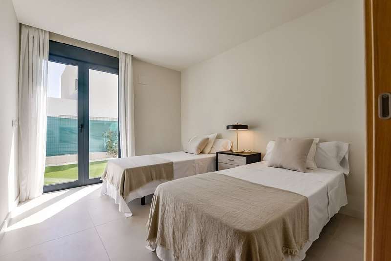 The modern houses boast a wealth of impressive features, blending practicality with Mediterranean-inspired design. Expansive gardens complemented by inviting pools and terraces form an integral part of these houses. Certain models even offer the luxury of an underground garage along with storage space. Inside, the layout showcases a comfortable living room adjoining a contemporary open-plan kitchen, seamlessly flowing into the dining area. Houses comprise three bedrooms adorned with spacious wardrobes, accompanied by two well-appointed bathrooms. The first floor introduces a charming terrace that opens up to panoramic vistas of the city and the nearby beach.