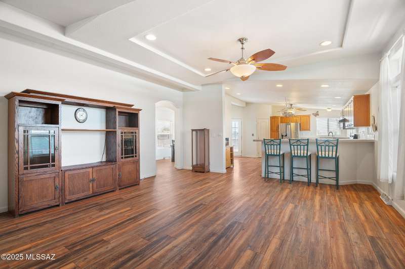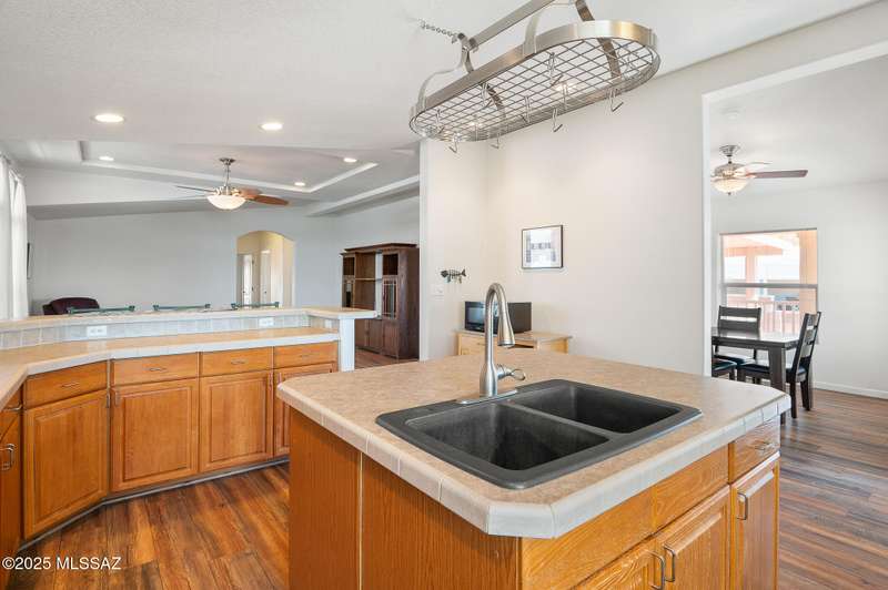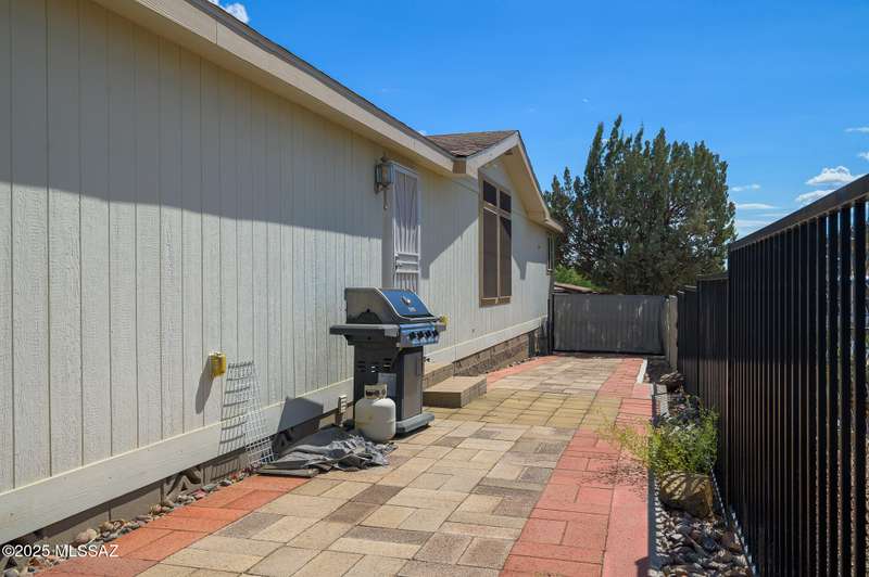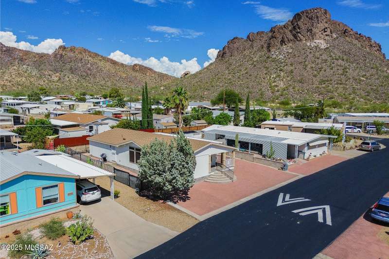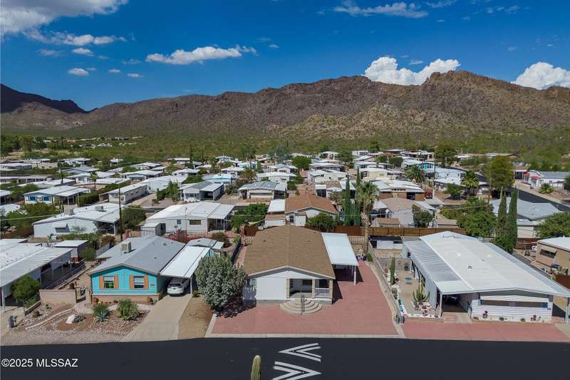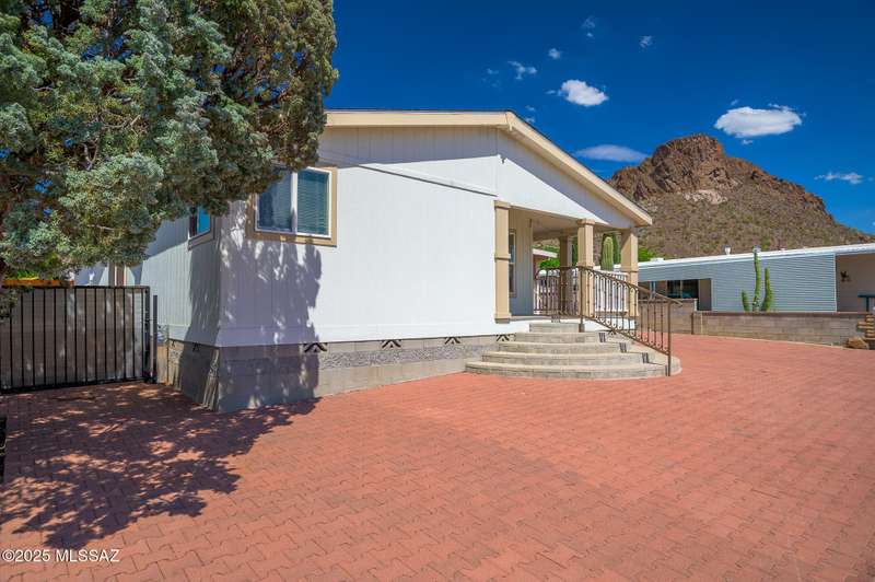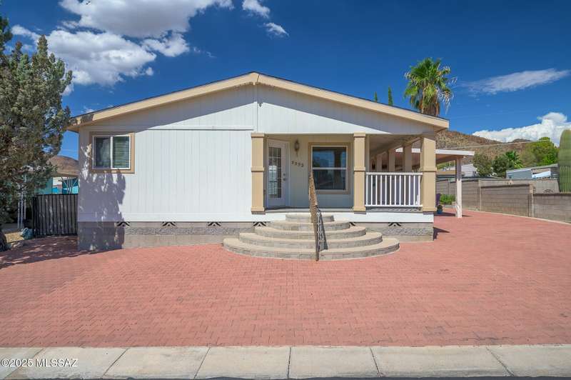 This home is nestled in the sought-after Tucson Estates 55+ community. This spacious 2-bedroom plus den manufactured home is a rare find! Sitting on a generous lot, this property offers both space and comfort, with beautifully laid pavers surrounding the perimeter for easy maintenance and added charm. Step inside and discover a truly one-of-a-kind layout featuring wide hallways, a massive kitchen with two sinks, a large island, perfect for entertaining, and ample storage including two separate storage units. The whole-home water softener ensures comfort and convenience in every corner. The primary suite is a retreat of its own, boasting an en-suite bathroom with dual showers. This home is move in ready. Don't miss your chance to live in one of the most popular communities in Tucson!