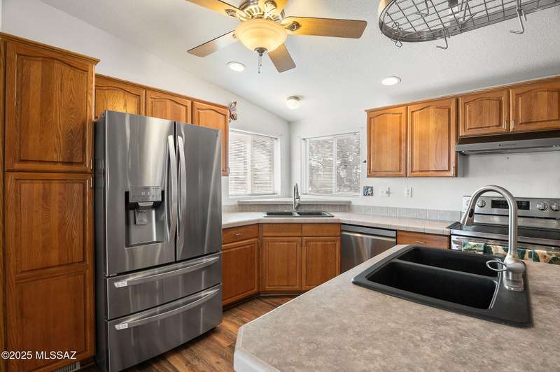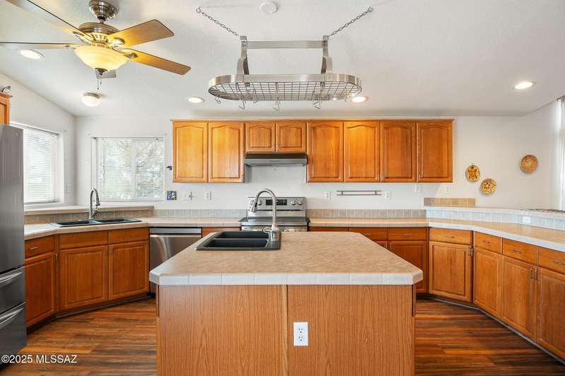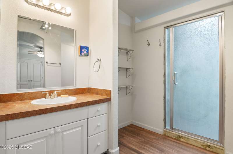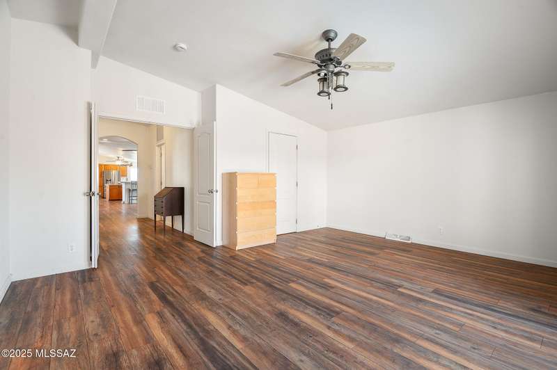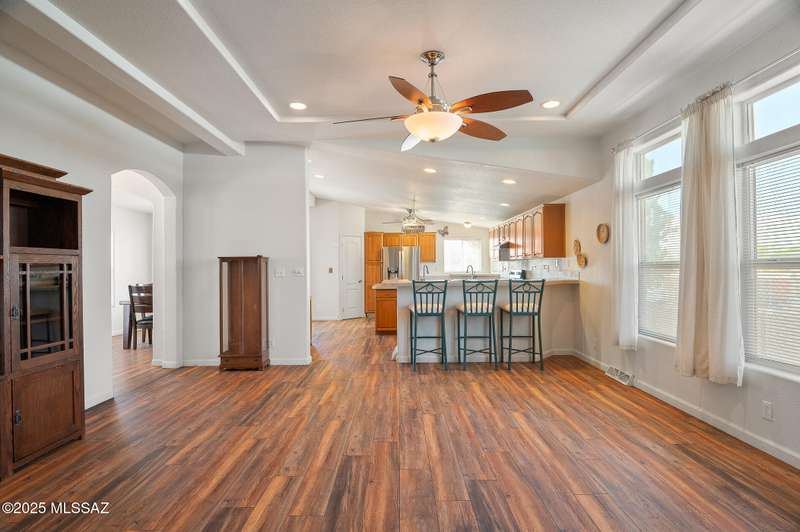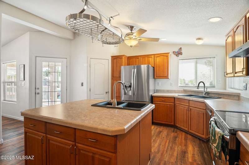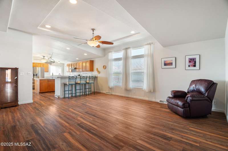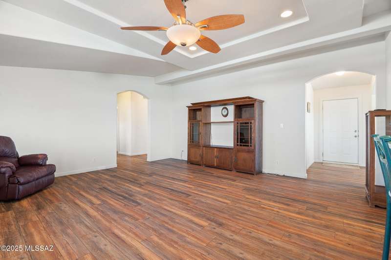 This home is nestled in the sought-after Tucson Estates 55+ community. This spacious 2-bedroom plus den manufactured home is a rare find! Sitting on a generous lot, this property offers both space and comfort, with beautifully laid pavers surrounding the perimeter for easy maintenance and added charm. Step inside and discover a truly one-of-a-kind layout featuring wide hallways, a massive kitchen with two sinks, a large island, perfect for entertaining, and ample storage including two separate storage units. The whole-home water softener ensures comfort and convenience in every corner. The primary suite is a retreat of its own, boasting an en-suite bathroom with dual showers. This home is move in ready. Don't miss your chance to live in one of the most popular communities in Tucson!