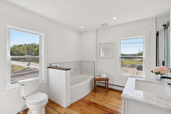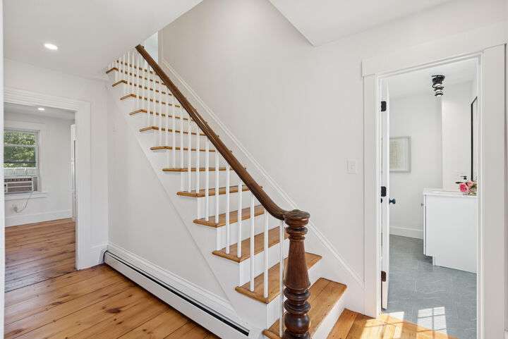 Step into history reimagined. This 1800s farmhouse has been completely renovated, blending timeless character with every modern comfort. Inside, you'll find all-new systems—including heating, electrical, plumbing, and appliances—plus a stunning, bright, eat-in kitchen, fresh bathrooms with custom tile finishes, and a convenient mudroom with storage ready to go. Upstairs, three bedrooms include a serene primary suite with a spa-like soaking tub and shower plus a separate bathroom with stackable laundry units. The third floor offers a spray-foam insulated attic—ready for your creative vision, whether it's a studio, office, or play space. Outdoors, a detached two-car garage, greenhouse, and established gardens with trellises invite an urban-homestead lifestyle just one minute from Cumberland Center and Greely. The property borders a working railway, where the passing train becomes part of the rhythm of life; a unique reminder of the farmhouse's heritage and place in Maine's history. If you're looking for a home that's both rooted and renewed—with space to grow, create, and live close to town while keeping that farm-like feel—133 Longwoods Road delivers.