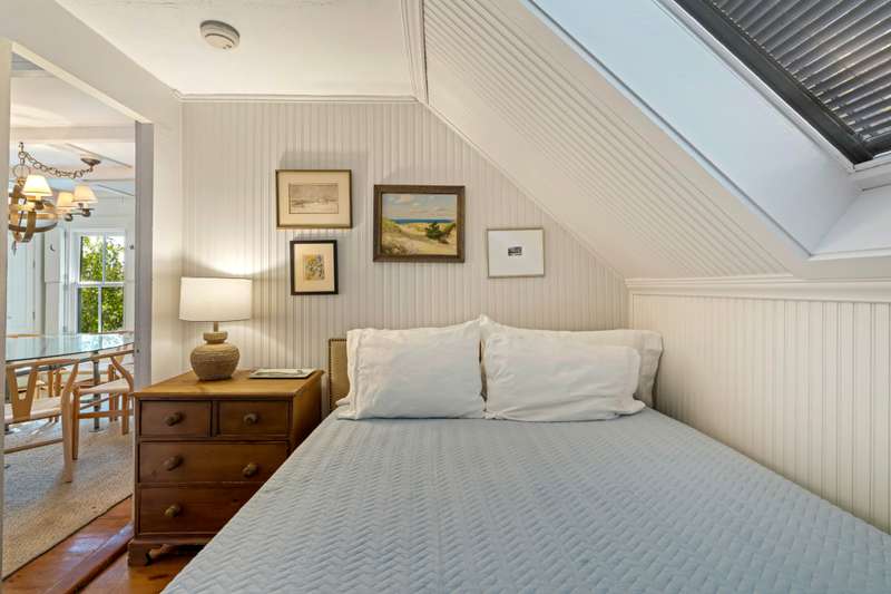 Make Provincetown your OWN with this top floor 2BR/1.5BA condominium nestled in the heart of Provincetown's desirable West End, in a small 3 unit association! Step into a spacious kitchen with granite countertops and newer stainless appliances including a gas range. A slider off the kitchen leads to a large, sun-filled deck perfect for morning coffee or sunset cocktails. The vaulted dining and living room is full of charm with original hardwood flooring, exposed beams, and a wood burning fireplace. The layout includes two bedrooms and a versatile third room ideal for a home office, guest space, or creative studio. A bonus attic loft nook offers additional space for storage or relaxing. Outside is a large brick patio with grilling area plus an exclusive use outbuilding with even more storage, a full size washer and dryer, and a convenient half bath with an attached outdoor shower. One parking space is included just behind the property and accessed from Nickerson Street. Weekly rentals a