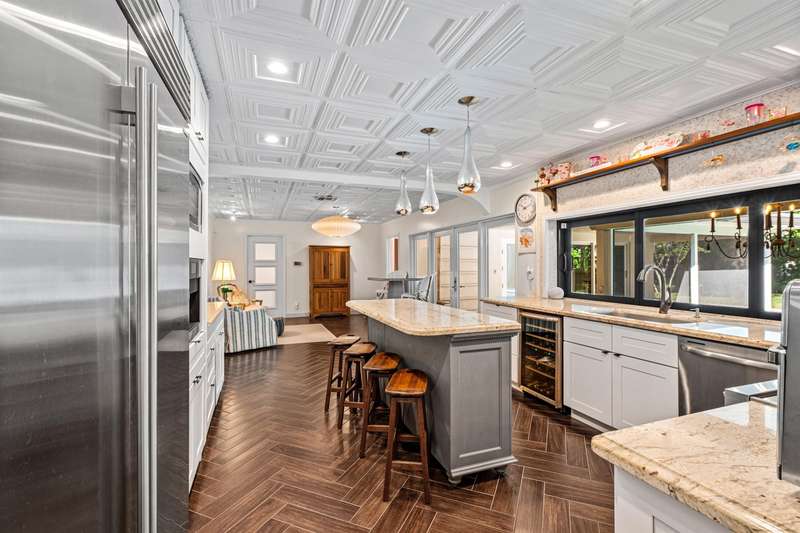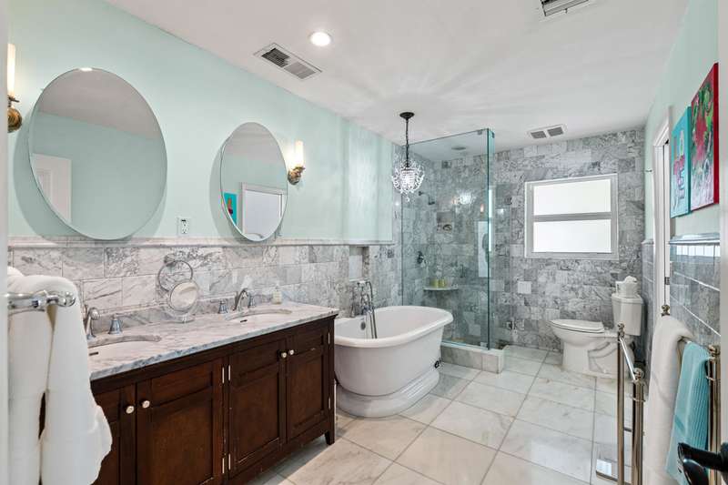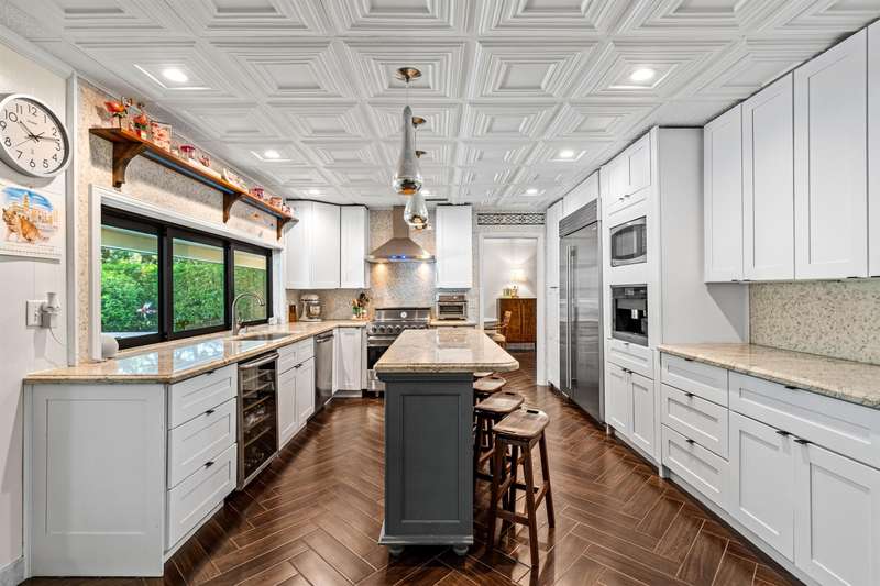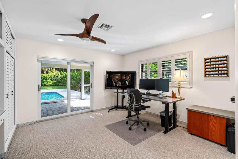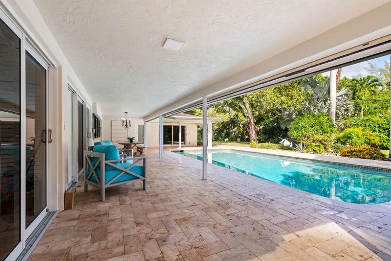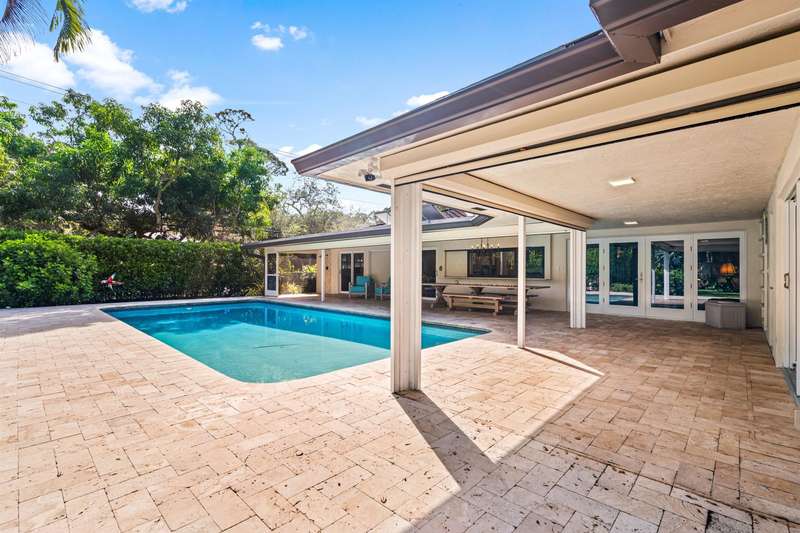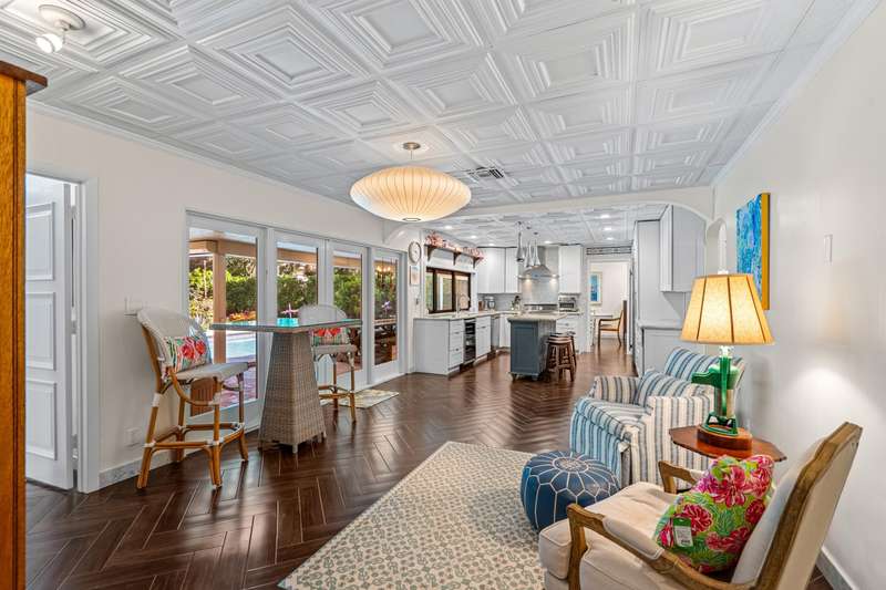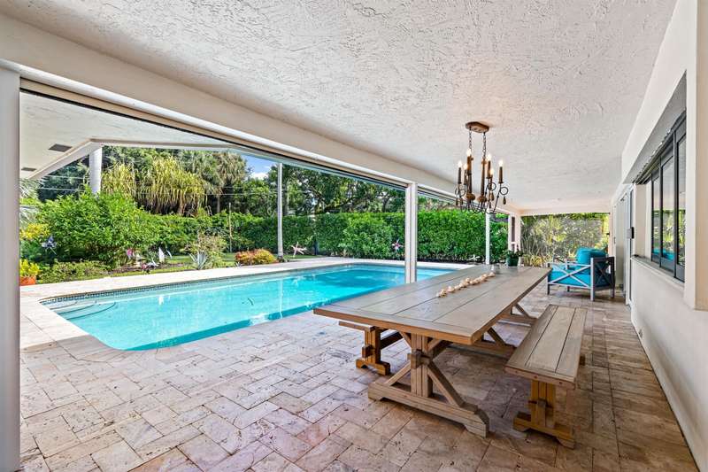 On a coveted park-like 0.4+/- acre corner lot in the heart of Old Floresta, this light-filled split-plan one-story features a reimagined primary suite with Carrara marble spa bathroom and oversize boutique closet, gourmet breakfast bar island kitchen w/top appliances, light-infused living room, formal dining room, family room, 3 guestrooms, office, impact windows/doors; 34'x16' heated saline pool.