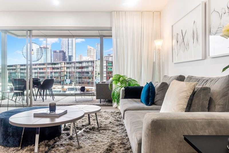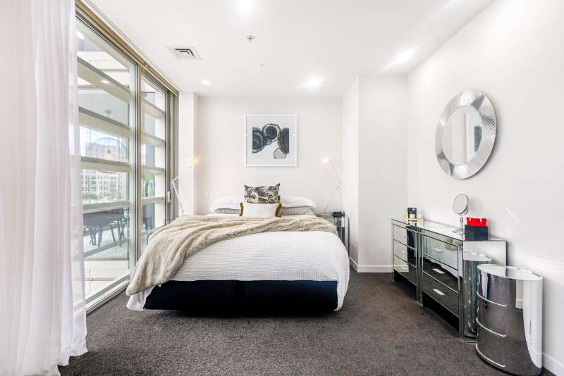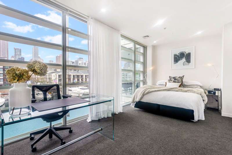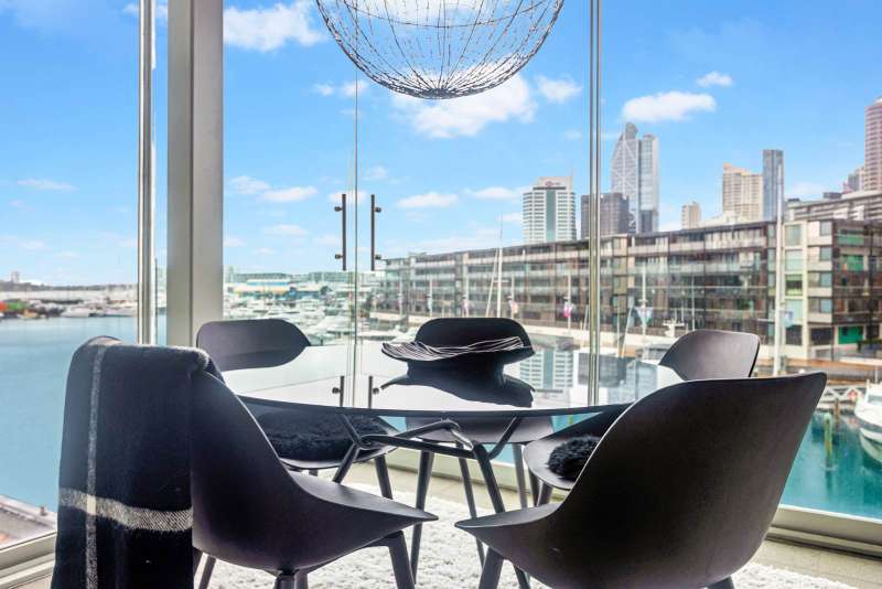 Introducing one of the most prized and sought-after positions within the renowned Stratis Block at Lighter Quay. Nestled in the quiet, sophisticated precinct of the Viaduct, this luxurious and generously proportioned one-bedroom apartment offers truly uninterrupted, panoramic water edge views, the definitive Auckland "wow" factor. The apartment welcomes you into an elegant, open-plan living and kitchen area, showcasing state-of-the-art appliances, premium fixtures, and a sophisticated attention to detail designed for effortless high-end living. The star feature is the expansive, covered, northeast-facing Lanai. This magnificent outdoor room acts as a flexible extension of your main living space, creating a secondary lounge and dining area with an unrivalled harbour vista. Designed for all seasons, floor-to-ceiling glass doors slide back completely transforming the space into an open-air balcony perfect for sun-drenched breakfasts or evening barbecues and drinks against the magical backdrop of the changing harbour. The spacious bedroom, positioned off the main hallway, offers its own appeal with views towards the marina and the Sky Tower. Its generous dimensions allow it to be utilised comfortably as a dual-purpose bedroom and dedicated home office. Lighter Quay is a premier, fully gated and secure complex featuring dedicated on-site managers, an undercover secure carpark, and visitor parking. Residents enjoy access to exceptional facilities, including a heated indoor lap pool, spa, sauna, and gymnasium. Step out the door and enjoy the best of the CBD's waterfront, with Wynyard Quarter, the Fish Market, and the ASB Auckland Theatre just a few minutes' walk away. World-class cafes, restaurants, Britomart, the Ferry Building, and city cycle paths are all easily accessible, and your backyard extends across Auckland's vibrant waterfront. Leasehold in perpetuity - talk to the experts for more information.