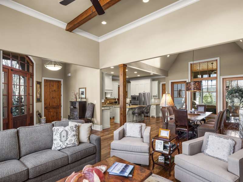 This exceptional 4-bedroom residence offers an unparalleled blend of luxury and convenience. Its prime location in the sought-after Cove Park enclave means you can effortlessly enjoy the state-of-the-art Wellness Center on a whim or with regularity, making spontaneous workouts or swimming the norm. Designed for an easy, well-lived life, the home features two bedroom suites and laundry room on the main level. The spacious primary suite boasts a sitting area and a spa-inspired bath, while the second bedroom is an en-suite guest bedroom featuring abundant light. The open-concept design is perfect for entertaining, creating a seamless flow throughout the main living areas. The gourmet kitchen, featuring granite countertops and a generously sized pantry, invites culinary creativity. The four-season screened porch is enhanced with retractable screens and a cozy, easy-to-use gas fireplace, setting the stage for tranquil moments or alfresco dining in any season. The upper level includes two additional bedrooms, full bath and ample walk-in attic storage, making stowing holiday decorations or less frequently used items a breeze. The two-car garage is accessed via a carriage drive in the back and offers room for a workbench and an additional refrigerator/freezer. Enjoy easy access to the scenic hiking trails, the Jack Nicklaus Signature Golf Course, and all the exclusive amenities of Asheville's only private, gated golf community. A Cliffs membership is available for purchase with this property.