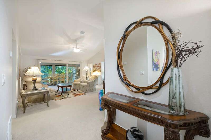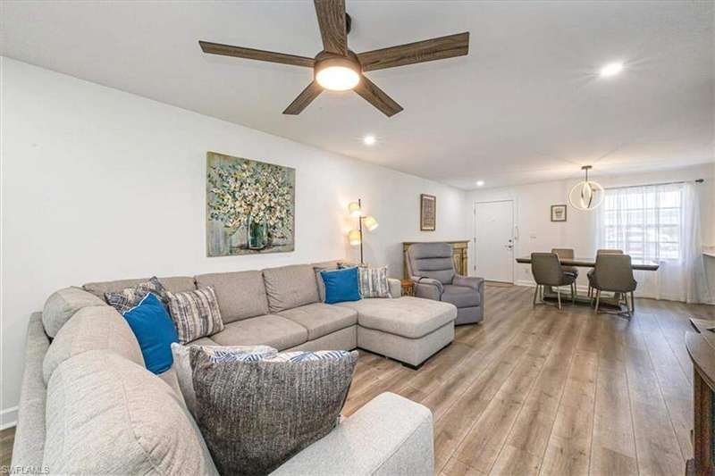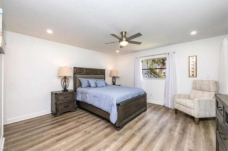 This charming 2-bedroom, 2-bath end-unit condo is nestled in a small, quiet 55+ community in the heart of Park Shore. Completely remodeled, the home offers a light and bright open layout with luxury vinyl wood-look flooring and features a stunning kitchen with custom cabinetry, pullouts, a huge pantry, wine fridge, beautiful quartz countertops, and stainless steel appliances. The oversized primary suite includes a spacious walk-in closet and ensuite bath with dual sinks, custom cabinetry and a frameless, tiled walk-in shower. The guest bathroom has also been tastefully updated. Enjoy the large enclosed lanai overlooking lush landscaping for year-round enjoyment. Close it for additional air-conditioned living space or open the sliding doors to relax in the screened-in area. Just steps from the community pool and BBQ area, this home also includes a covered carport, guest parking, and bike storage. Perfectly located near shopping, dining, and downtown Naples, with optional membership to the Park Shore Association offering private beach park access.