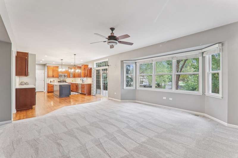Batavia Schools beauty is updated to the max with a 4-CAR tandem garage and nearly 4000 sq ft of finished living space! Welcoming WRAP AROUND FORNT PORCH leads to a stunning two-story foyer, den with glass French doors, formal dining room, and gorgeous HUGE island kitchen with Quartz counters and SS appliances, tons of cabinetry, and butler's area connecting to the dining room. Kitchen opens to a casual dining area and spacious family room with fireplace that overlooks FENCED yard. Hardwood floors, new carpet, crown moldings, recessed lighting and designer lighting, main floor huge laundry/mudroom and REMODELED powder room all add comfort and style. Huge deck off the kitchen overlooks fenced yard with mature landscaping-perfect for entertaining. Upstairs the primary suite offers volume ceilings, walk-in closet, and spa-like bath with dual vanities, skylights, soaking tub, and separate walk-in shower. Three additional bedrooms and well-appointed hall bath with skylight complete the upper level. Finished English basement includes large family/recreation area, full bath, 5th bedroom/flex room, storage galore, and 2nd laundry area. Quiet cul-de-sac location minutes to shopping, parks, and schools. Move-in ready! Great home for the Holidays!