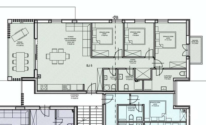 The building consists of a basement with garages and storage areas, providing residents with practical parking solutions and additional storage space. The ground-floor apartments have the advantage of their own garden, ideal for relaxing outdoors. On the first floor, the apartments feature spacious terraces and balconies that offer excellent views and space for socializing, while the second-floor apartments, in addition to terraces, have access to impressive rooftop terraces, adding a special charm and exclusivity.
