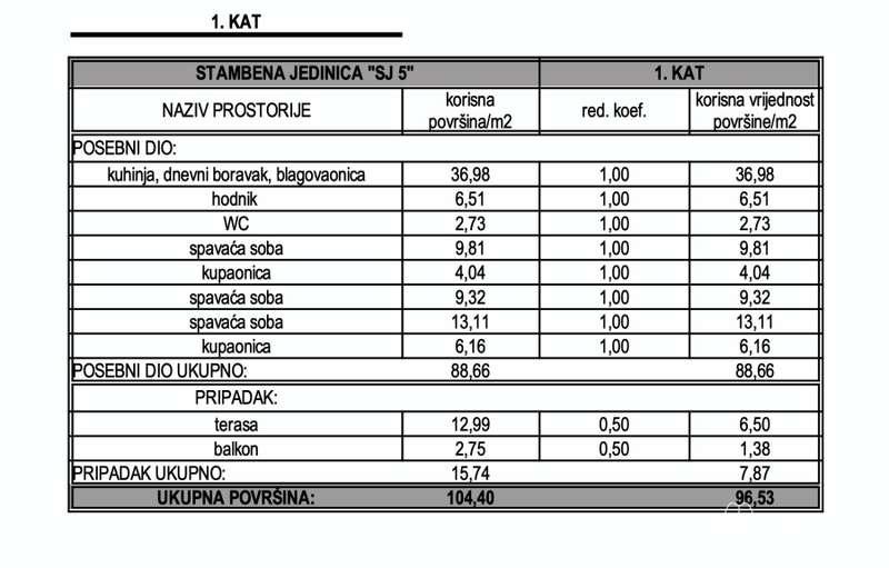 Apartment S-5 - 1st floor - living area 88.66 m2 (3 bedrooms + 2 bathrooms + WC) + terrace (13 m2 - SE) + balcony (3 m2 - SW) + garage parking space + storage in the basement, net calculation area 105.99 m2 = 476,955 EUR