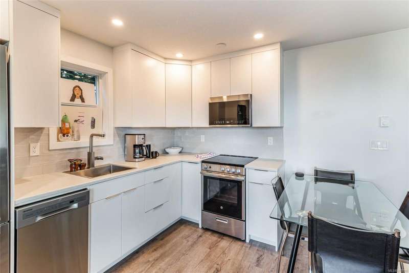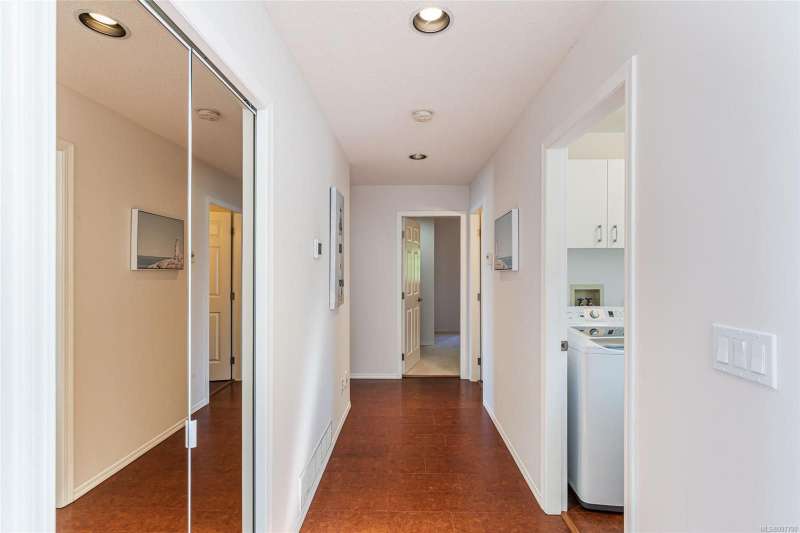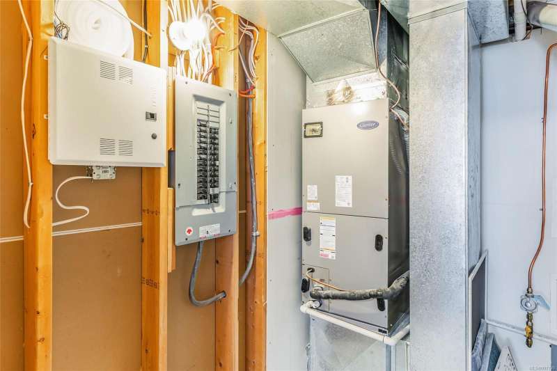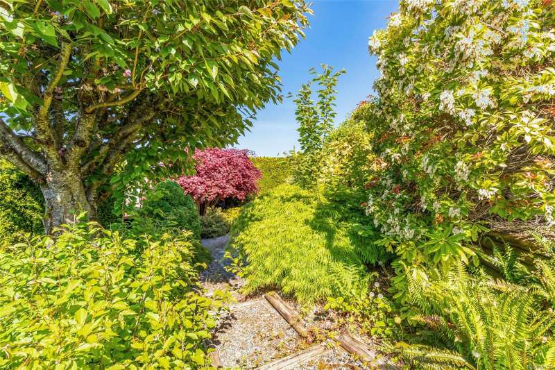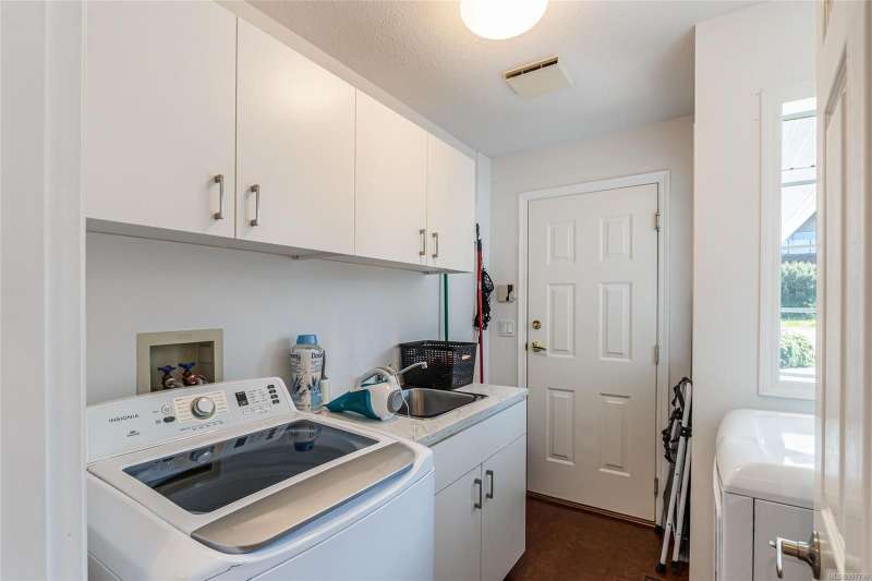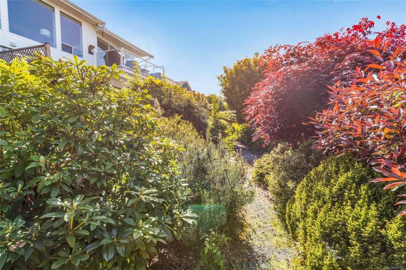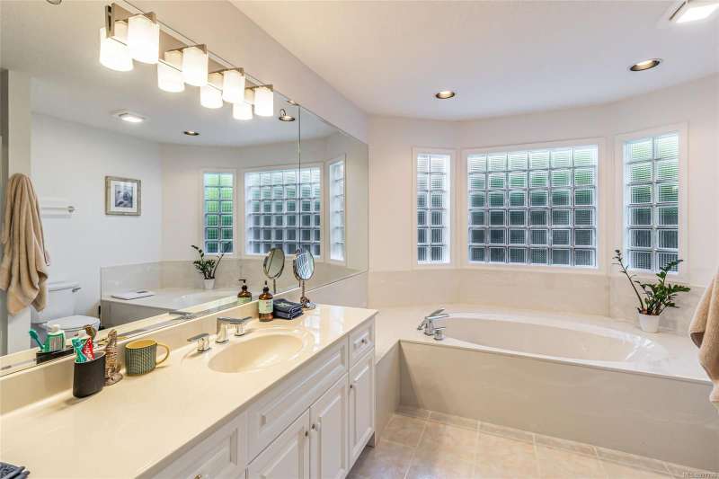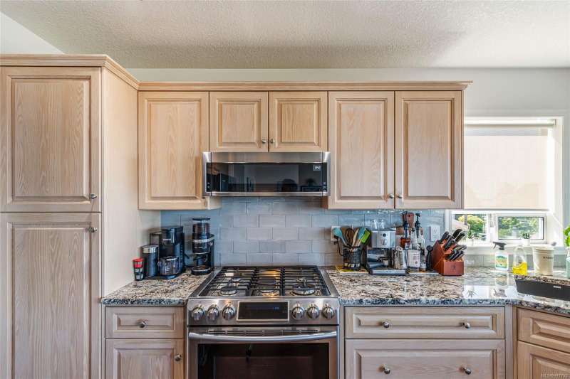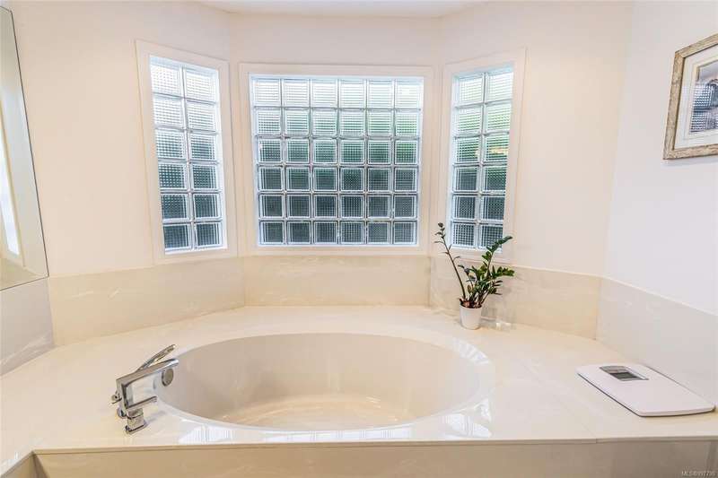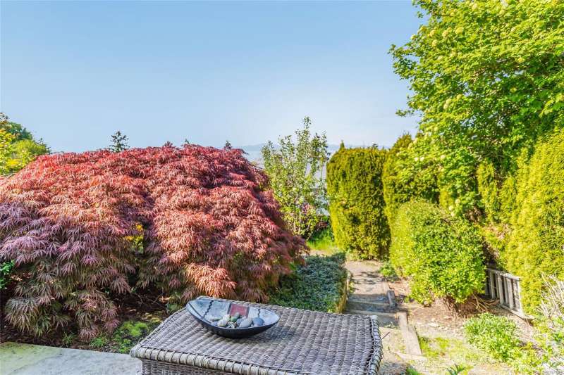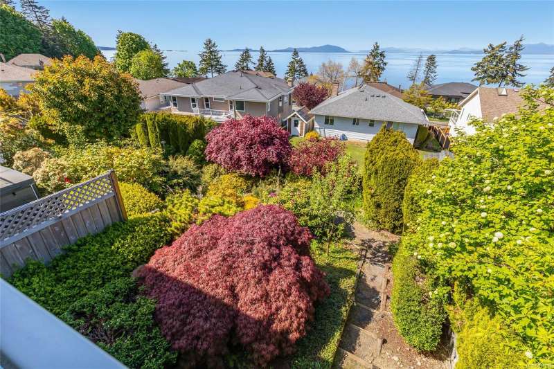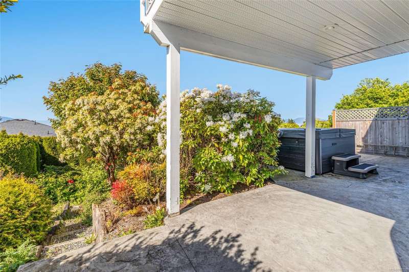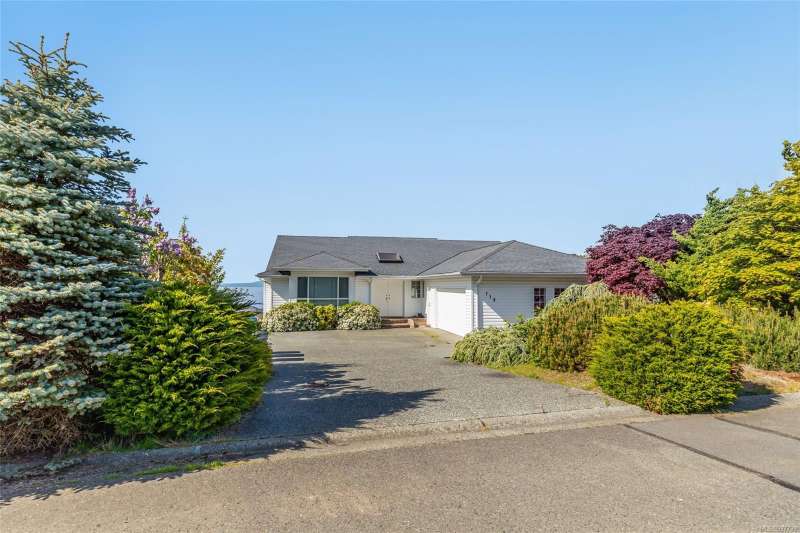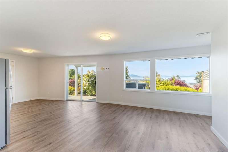 This exceptional family residence offers sweeping ocean views, thoughtfully designed. Expansive windows, two generous decks, and a walk-out patio with a hot tub. The main level showcases an open-concept layout, connecting the elegant kitchen and welcoming living area, which are anchored by a striking three-sided gas fireplace. The kitchen features classic oak cabinetry, granite countertops, and premium stainless-steel appliances. The spacious primary bedroom includes a private ocean-view deck and a well-appointed 4-piece ensuite. Upgrades over the years includes a new heat pump, furnace, electrical panel, updated plumbing, renovated bathrooms, and a refreshed lower-level family room. Adding further value is the 840 sq ft two-bedroom plus den suite, complete with a modern kitchen, full bathroom with in-suite laundry, and a private covered patio with panoramic water views—ideal for multi-generational living or as a desirable rental opportunity.