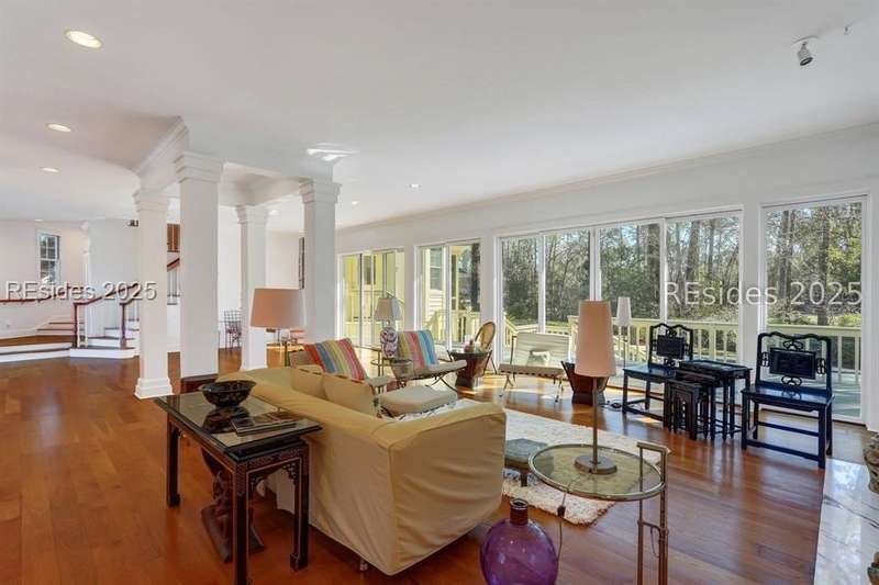 Welcome to one of the most luxurious homes on Hilton Head Island! Remarkable quality and design with stunning panoramic golf views. This 4 bedroom 3.1 bath (plus Den) home affords all amenities imaginable. Chefs kitchen, luxurious primary level owners suite, Den/study and so much more including 3 fireplaces, smooth ceilings, and large screen porch with views of the luxurious over-sized private pool with spa. All overlooking the Wexford's 10th hole of the private Arnold Palmer designed 18 hole golf course. Resort type outdoor spaces let you enjoy the essence of Lowcountry living whether poolside or lounging on the decks or patios. Extensive mature landscaping adds to the tropical vibe! Easy stroll to all amenities. Residents of Wexford enjoy access to world-class amenities, including a private harbour and marina, championship golf course, tennis and pickleball courts, croquet lawn, resort-style pool complex, clubhouse dining, and very active club participation. Ongoing club renovations include a 4,800 sf addition to the Clubhouse, new 7,300 sf Harbour Center as well as a new stand alone golf shop. Scheduled to be completed by April 2026.