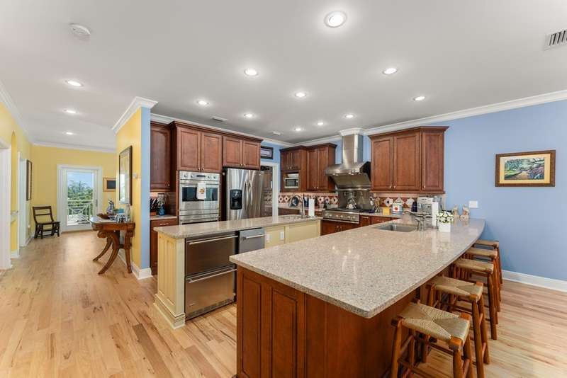 NEVER RENTED, HIGH END CUSTOM BUILT GULF FRONT is a showcase of luxury craftsmanship & timeless design by Windolf Construction. Offering 5 bedrooms & 6.5 bathrooms, w/ each bedroom featuring its own private ensuite bath & deck. Designed for both elegance & comfort, this extraordinary property is positioned on an estate-sized property comprising both a Gulf-front lot & an additional 1st-tier lot. This residence was built to maximize unobstructed Gulf & Bay views north, south, & west delivering sunsets every day of the year. Step inside to find expansive open living spaces with a cozy fireplace that anchors the main living room, while soaring ceilings & walls of glass frame the sparkling Gulf of Mexico. A gourmet chef's kitchen complemented by a butler's pantry on the main level, complete with high-end appliances, custom cabinetry & two large dining areas ideal for gathering & entertaining. Multiple living & dining areas flow seamlessly onto spacious Gulf front decks, perfect for enjoying the sound of the waves & the evening sky. For convenience, the home includes a private elevator servicing all levels. The location is unmatched on a quiet stretch of beach just steps away from from the neighborhood pool. The crown jewel of the home is the private master floor, a serene retreat spanning more than 1,800 sq ft. Designed as a sanctuary, it features a spacious sitting room overlooking the Bay views, a private Gulf front deck, a spa inspired bath w/ custom cabinetry, soaking tub & walk-in shower. From every angle, this level was designed to capture unmatched water views. The large lot provides room for outdoor living and entertaining, while lush landscaping enhances the sense of seclusion & coastal charm. Whether it's morning coffee w/ a sunrise over the bay or cocktails at sunset over the Gulf, every moment here is unforgettable. With its never-rented history, pristine condition, and one-of-a-kind location, this is a rare opportunity to own a true Gulf-front masterpiece.