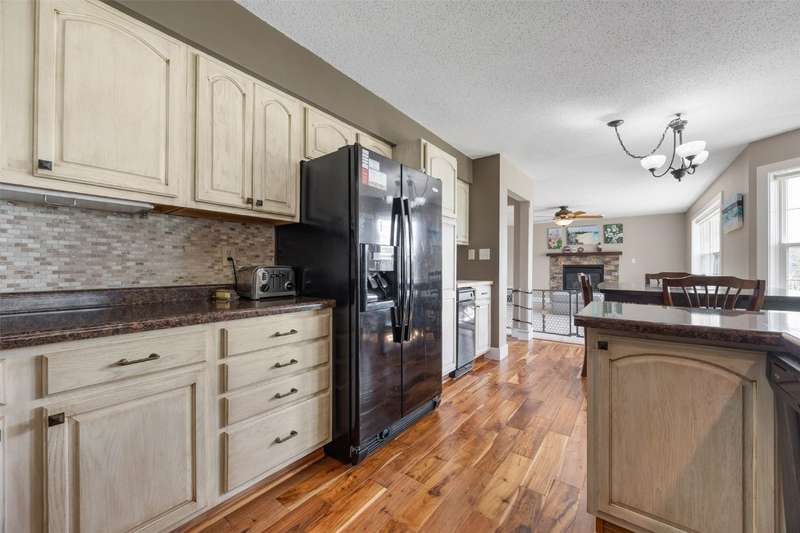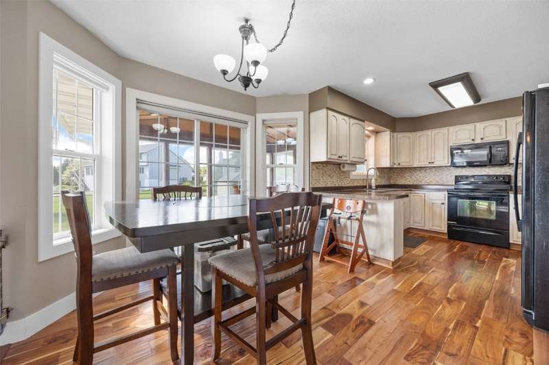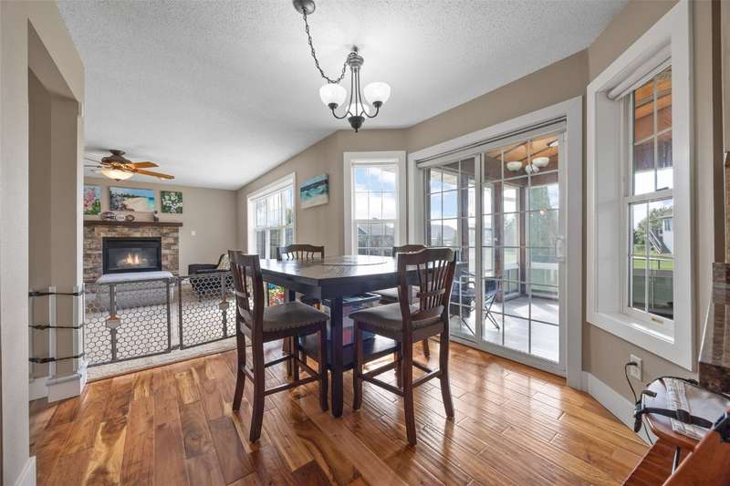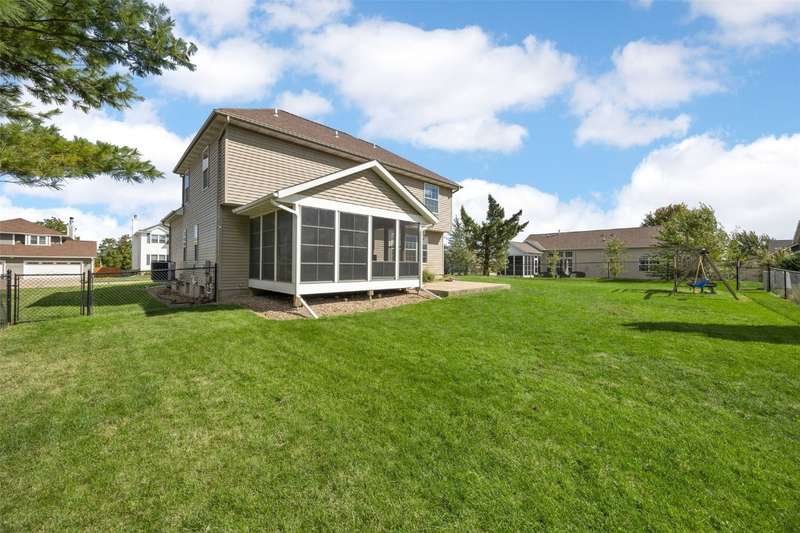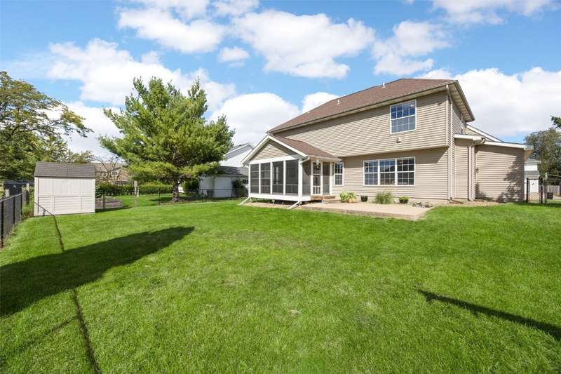 You won’t want to miss this beautiful home! From the curb appeal to the moment you step inside, the upgrades stand out—featuring a newer front door, an open iron-rod staircase, and rich acacia hardwood floors. The main level offers an inviting open-concept kitchen and living room anchored by a stone gas fireplace, along with a spacious family room boasting vaulted ceilings. The kitchen impresses with distressed off-white cabinetry, tile backsplash, and a deep sink.Upstairs, you’ll find four generously sized bedrooms. A true highlight is the screened Easy Breeze porch, added in 2019, complete with a heater for nearly year-round enjoyment. From there, step out to a patio ideal for entertaining, overlooking a flat, fully fenced backyard with a handy storage shed. This home truly checks all the boxes!