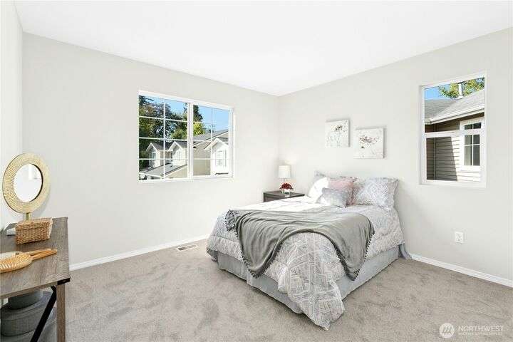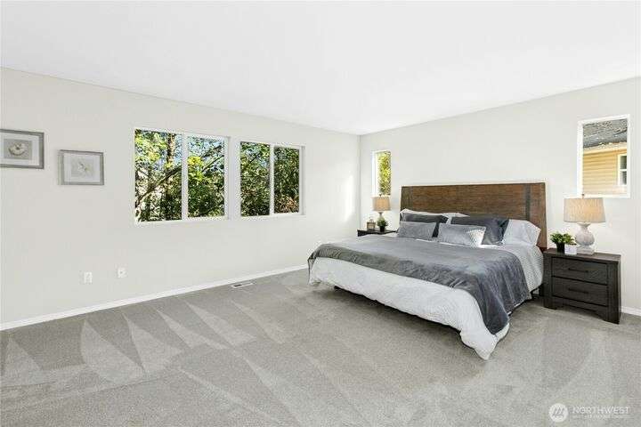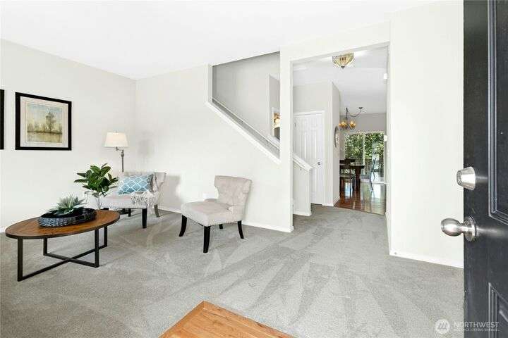 Welcome to this beautifully maintained 3-bedroom, 2.5-bath home tucked away in a quiet, convenient cul-de-sac. Recent upgrades include a brand-new roof, fresh interior paint, and new carpet throughout, making it truly move-in ready. The main floor offers an open-concept family room and kitchen with hardwood floors, plus a separate living room and a half bath. Step outside to a spacious deck overlooking peaceful natural wetlands—an ideal space for entertaining or relaxing. Upstairs, you’ll find two comfortable bedrooms and a generous primary suite featuring a five-piece bath with a luxurious soaking tub. Detached home with a one-car garage and added privacy make this home a fantastic alternative to townhouse living. Pre-inspected!