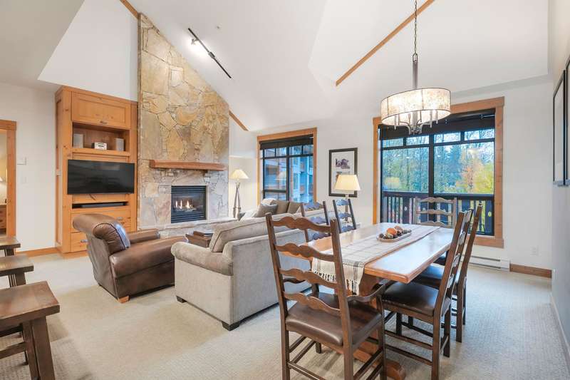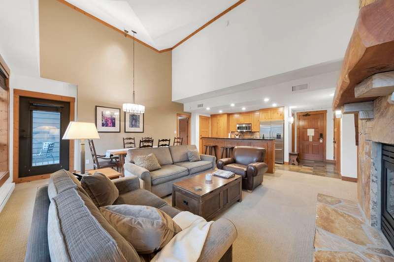 Ski-in/Ski-out from this fully furnished 2-bedroom, 2-bath condo in the coveted First Tracks Lodge. Enjoy two outdoor hot tubs, a pool, steam room, fitness room, bike storage, in-suite laundry, personal ski locker, and a spacious owner's closet. South-facing with vaulted ceilings (8'-17'2") and panoramic mountain views, the open-concept living, dining, and kitchen areas receive plenty of natural light. Steps from the gondola for year-round adventure. Unlimited personal use with a full rental management program.