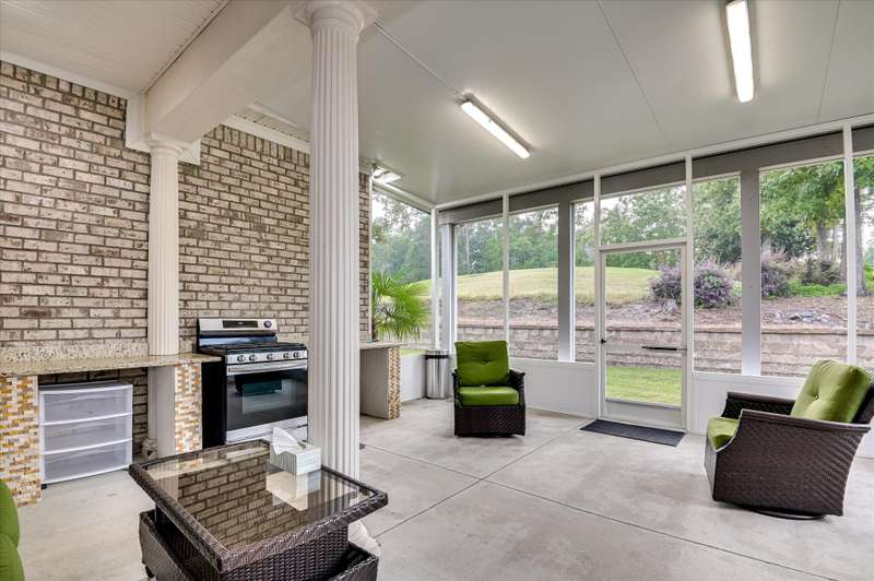 Experience luxury living in the heart of Woodside Plantation. This four bedroom, four and a half bathroom home offers over a third of an acre with golf course views. Inside, you'll find soaring twenty one foot ceilings, custom European crystal chandeliers, wood beam accents, and eighteen total rooms designed for both luxury and comfort. The kitchen is a true standout with Viking appliances, marble countertops, custom cabinetry, a commercial grade vent hood, and a six by seven foot built in refrigerator. A bay window breakfast nook overlooks the backyard and golf course. For entertainment, enjoy a 27 by 17 foot home theater with surround sound, retractable screen, projector, and a private bar area. The owner's suite features a newly remodeled bathroom with a double bench walk in shower, Jacuzzi tub, and elegant tile finishes. Additional highlights include a screened patio, Viking appliances, built in features throughout, and the privacy of living in one of Aiken's most sought after communities. This home delivers space, upgrades, and location all in one.