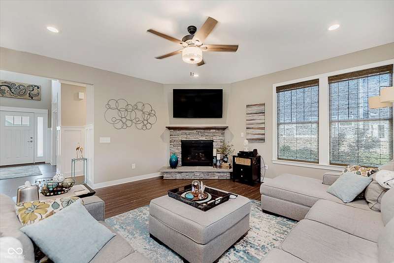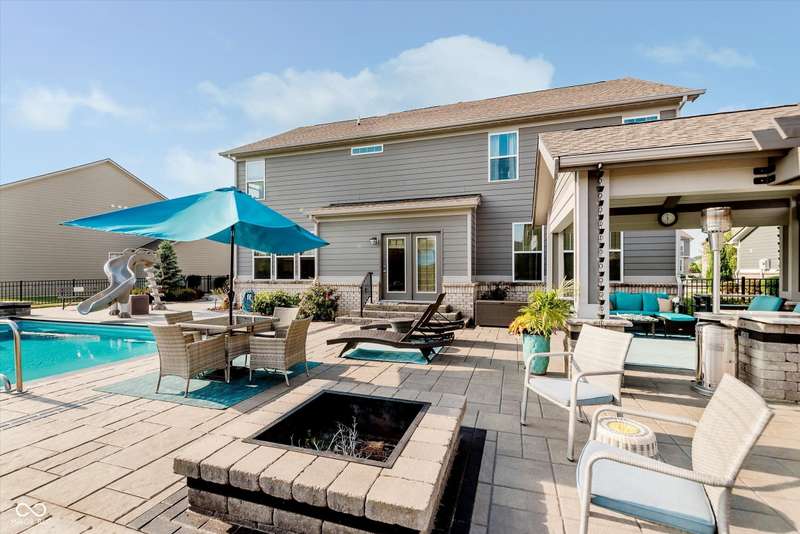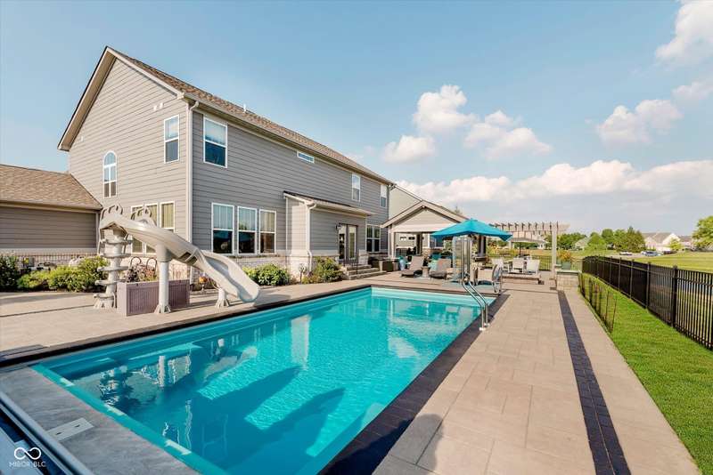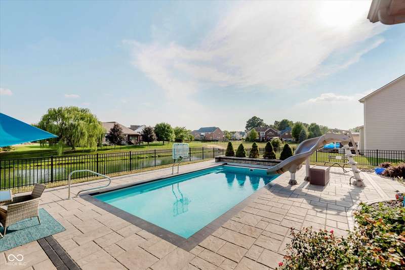 Looking for a home with WOW factor and elegance? This comfortable two-story was made for entertaining and easy living. Four bedrooms, 3.5 baths plus a basement. Be impressed and and in awe with the expansive, resort style, outdoor living space with a saltwater, inground swimming pool!! Complete with a pool slide, new cover and new pool sweeper. Covered outdoor kitchen area, fenced in yard and professional landscaping. The heated, fiberglass pool starts from 2 - 6 feet and will provide years of entertainment and special memories with friends and family. "All of this overlooking a peaceful pond." Partially finished basement features a full bathroom, bonus room areas, storage room with an egress window for a possible future bedroom. Basement is also pre-plumbed for a bar/ kitchenette. The open concept main level offers a two-story entry, engineered, waterproof, laminate floors throughout and so much more! Upgraded kitchen with loads of cabinets, oversized center island plus a walk-in pantry. Gas starter fireplace, nine foot ceilings, upgraded fans and lighting, upgraded Zenga custom blinds and shutters. Possession is negotiable. Water heater, dishwasher, and sump pump with battery back up are all one year old.