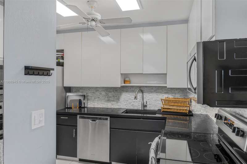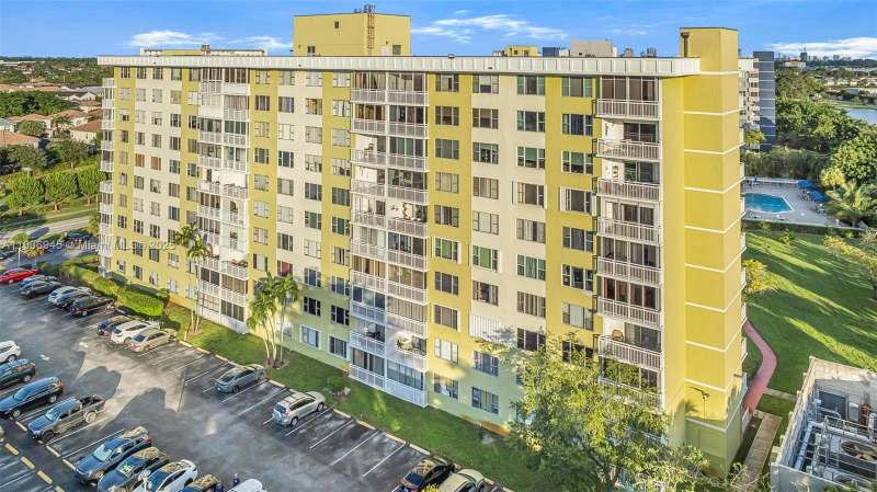 Enjoy South Florida living with beautiful views from sunrise to sunset! Check out the Hard Rock Casino and Hard Rock Stadium from your large windows and open floor plan! Amazing 2 bed, 2 bath condo with tile flooring + upgraded light fixtures. Lovely updated kitchen w/granite counters, SS appliances, and stone tile backsplash. Oversized primary bedroom with 3 closets, makeup vanity, new ceiling fan and a tub/shower combo! Great 2nd bedroom that has guest bathroom w/walk-in shower. Laundry and storage unit a few steps away. Enjoy secured building with lobby guard, heated pool, tennis courts, and walking and biking trails. Centrally located to I-95, Turnpike, FLL Airport, Gulfstream & Hard Rock Casinos, Hollywood Boardwalk, Aventura Mall & Las Olas Blvd. All ages welcome!