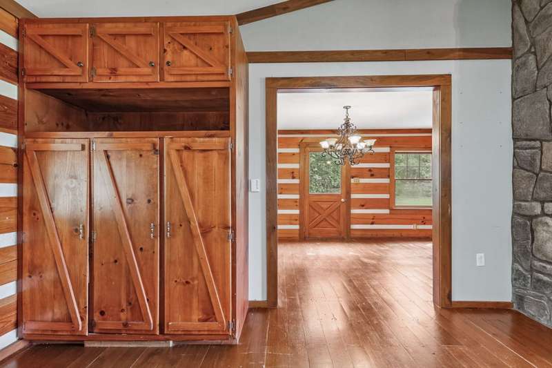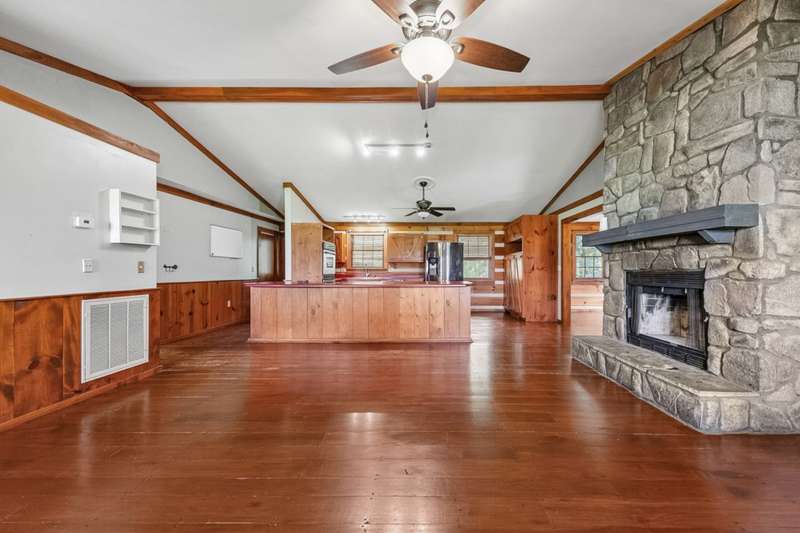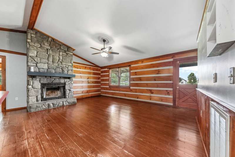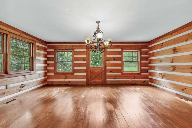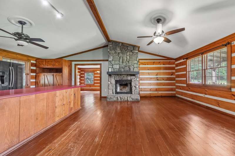 Attention Large Families...Check Out This 2886 sqft LOG HOME on 6.38 Acres! 3 Bedroom (being used as 5bdrm) 3 Bath, Open Floorplan w/Vaulted Ceiling, Face Nailed Hardwood Floors & Stone FP, Formal Dining Room, Full Finished Basement (w/Rec Room, 2bdrms, Office Space, Utility & Bathroom) This could be A Great Little Mini-Farm w/Barn(in need of repair) Possible Lake Site behind Barn *The Sellers are Offering a $10,000 Allowance Towards the HVAC Unit & Other Items in Need of Repair* The Front Steps Have Just Been Rebuilt. The Back Porch & Steps Absolutely Need Some Attention...DO NOT WALK ON!