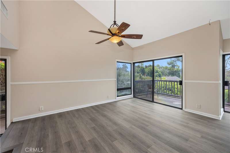 Brand new laminated flooring!! At $1,149,000, the lowest condo in this fabulous neighborhood of Rancho San Joaquin Interior location, away from the noisy streets! Street level entry with high ceiling! End unit with no one above! South facing with three sets of sliding doors and two balconies! Light and bright with beautiful view! Rarely on the market, this one-of-a-kind single-level home is situated in a beautiful location in the prestigious golf course community of Rancho San Joaquin. Zoned for the number 1 high school in Irvine (University High), the secluded two-bedroom and two-bathroom top-floor condo is an end unit with a street-level entrance. This wonderful home boasts 1468 square feet of living space consisting of an open floor plan that includes a living room with a cathedral ceiling and fireplace, a dining room, and an open kitchen. Enjoy the panoramic view of the neighborhood through the multiple large sliding doors, which also provide access to the oversized private balconies located around the unit. The gourmet kitchen has a granite countertop and is equipped with stainless steel appliances, a double oven, a gas stove top, a microwave, and a water purifier. With an abundant amount of counter and cabinet space, the kitchen provides a beautiful and functional space for even the most demanding chefs.