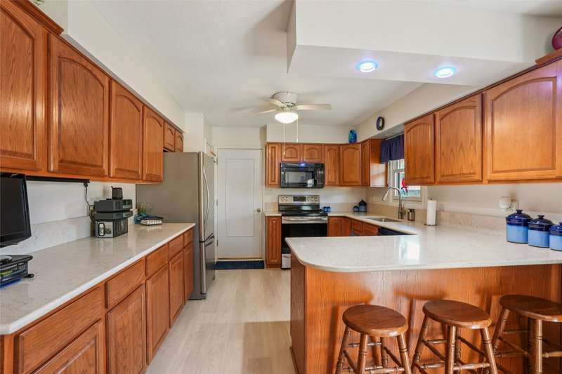 Welcome to this 4-level-split home in Urbandale with so much to love! Enter the spacious living room with a bow window for natural light. Large kitchen with long serving counter, lots of cabinets, pantry closet & stainless steel appliances. Large eating area overlooking the lower-level family room, walks out (Pella sliding door) to patio, perfect for relaxing & grilling. Cozy family room has an all-brick gas fireplace & built in bookshelves. Upstairs you will find the Primary bedroom with walk-in closet and full bath. There are 2 family bedrooms & a full hall bath to complete this level. Downstairs/lower level has 2 additional bedrooms that could work as an office/playroom, and an updated bath with large walk-in shower. Basement level is finished on one side with a rec room that would be great for a family game room. The unfinished side of the basement is a mechanical/laundry room with room for storage. Some of the updates include New furnace 2025, New Anderson windows 2018, New vinyl siding & gutters 2018, New roof 2019, Radon system installed 2016, Gas fireplace conversion 2019, air duct cleaning 2025, new kitchen countertops & sink 2022, new vinyl shed 2021. Electrical box outside wired for a portable generator. Backyard is fully fenced & has a raised garden area. 2 Car attached garage with attic storage. Location is within walking distance to Olmsted Elementary, Urbandale Middle School & High School. A Great Family Home & Exceptional Value for all it offers!