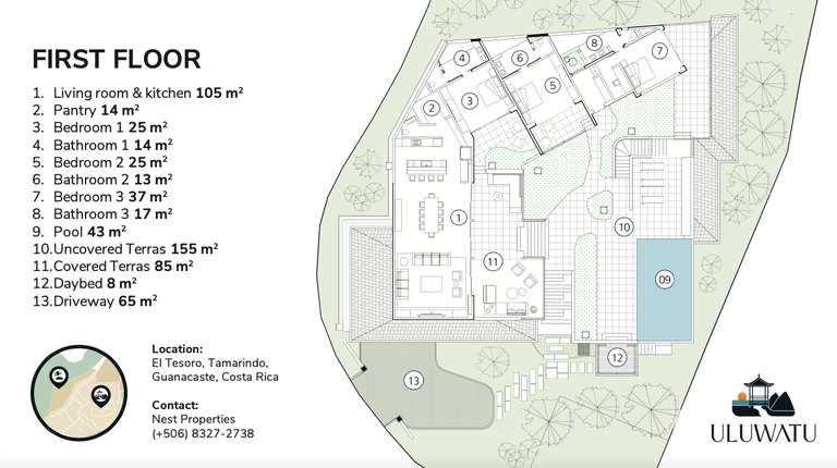 El Tesoro offers 24/7 security and a strong HOA amidst multi-million-dollar estates, just 5 minutes from Tamarindo Airport and 1 hour from Liberia International Airport. Casa Wayan combines luxury, location, and lifestyle in one of Costa Rica's top communities.