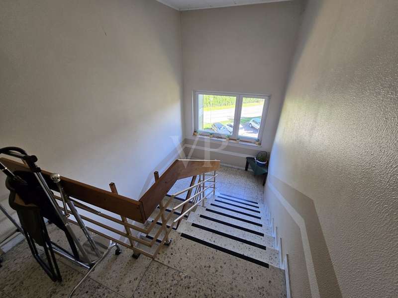 We present a well-kept 3-room apartment on the outskirts of the popular Wolfenbüttel district of Fümmelse. This 3-room apartment on the 3rd floor of a well-kept eight-party house offers an ideal retreat for couples or singles, but also for a small family on around 78 m². In addition to a spacious west-facing living room with a large adjoining loggia, there is a bedroom, another room that can be used as a children's room, guest room or home office, two hallways, a shower room, a separate toilet and a kitchen in the apartment. There is also a private cellar room, a bicycle cellar, a laundry room and a large garden area for shared use. A private parking space completes the offer. All windows in the apartment are fitted with shutters. All windows are made of plastic and were only replaced in 2024. The same applies to the windows in the stairwell. The heating and hot water supply are conveniently provided by a new gas condensing central heating system with additional hot water storage tanks, which was only installed in 2023. The apartment is located in a solid, high-quality solid construction four-storey eight-party house built in 1973. The community of owners of the entire property of 4,359 m², which has also existed since 1973, also includes the neighboring entrance with a further eight parties, as well as the neighboring house built at a 90° angle, so that the community of owners consists of a total of 32 parties. Both houses are under good management and are well maintained. Over the years, the communal property has been repeatedly renovated and modernized, including a new front door and letterbox system in 2015, new balcony balustrades and new stairwell windows in 2024. There is therefore no renovation backlog. The apartment itself has also been repeatedly renovated and modernized over the years, including a new bathroom and toilet (around 2012), new radiators and blinds (around 2000), a new awning (around 2012) and electrics with a modern fuse system. Overall, this apartment in a popular location is ideal for owner-occupation, but also as an investment for renting out. The house rent currently amounts to EUR 316.00. A valid energy certificate (consumption certificate) is available. The apartment is currently vacant and will be handed over unlet. Do not hesitate and secure your individual viewing appointment today.