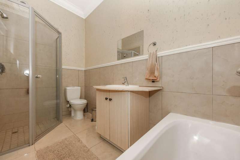 The modern open-plan kitchen is a culinary delight, boasting ample storage, an enclosed pantry, separate laundry, and a stylish breakfast bar adorned with granite tops. Overlooking the spacious lounge and dining areas, the kitchen seamlessly combines style with functionality, featuring stainless steel balustrades, real wood venetian blinds, air conditioning, and underfloor heating for an extra touch of sophistication.