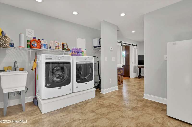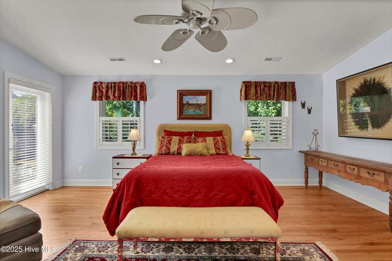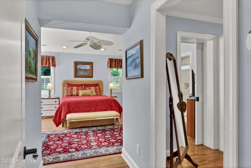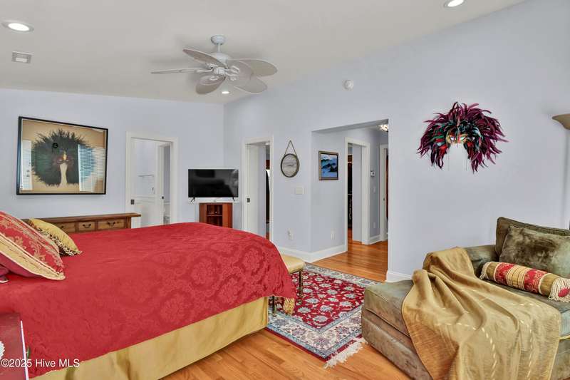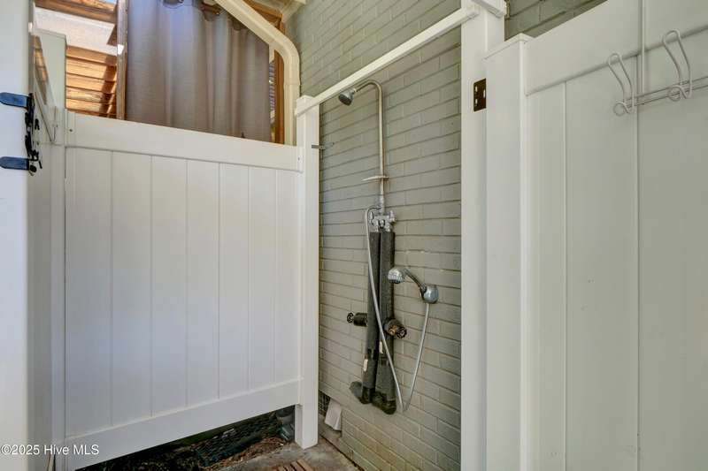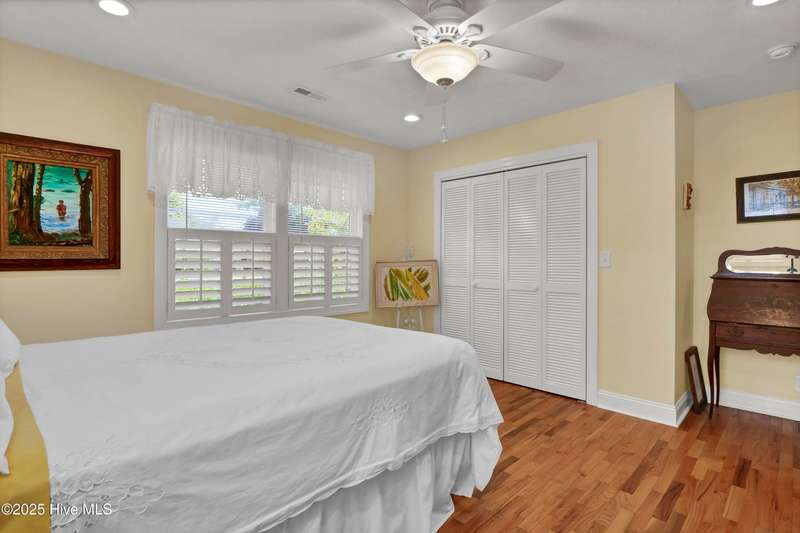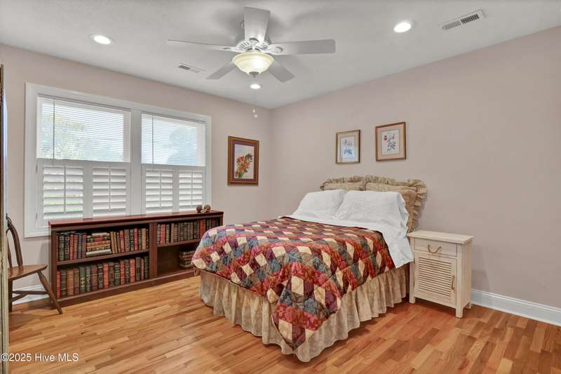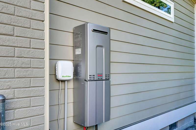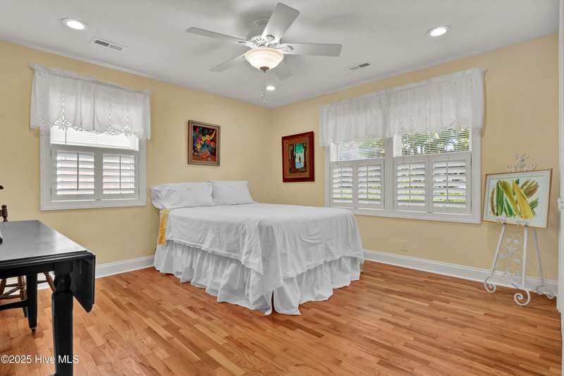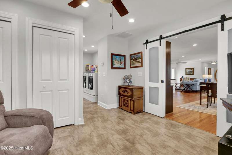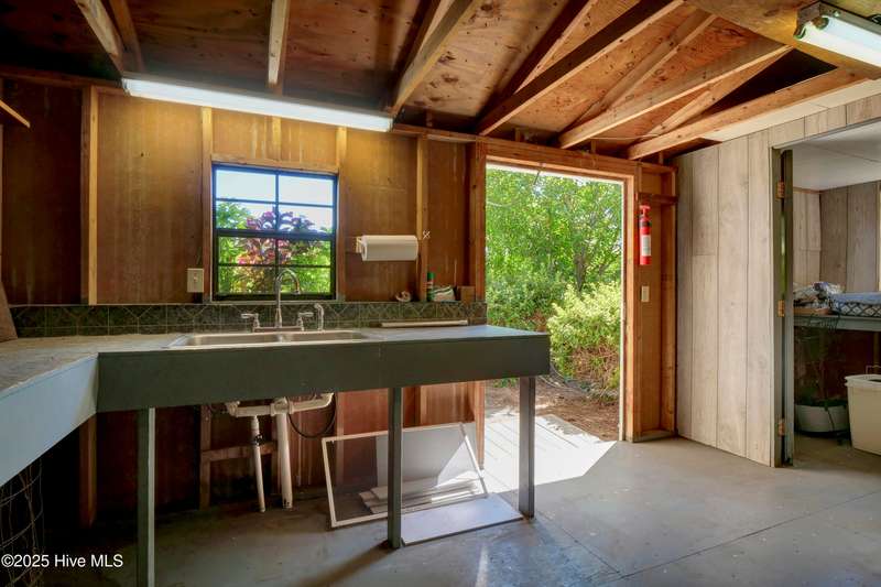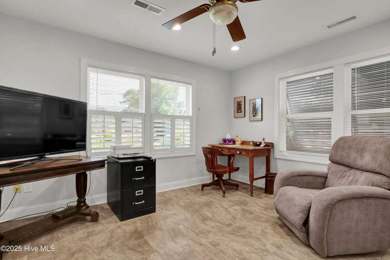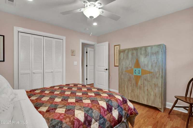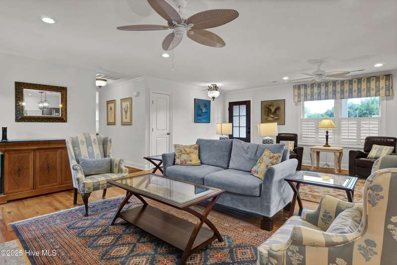 A timeless design extensively renovated down to the studs in 2018. This home is in a prime location with an open concept featuring roomy L-shape kitchen with formed concrete counter top with oyster shell inlay, granite backsplash and large island with Black Walnut top and extensive cabinet space below. The open living room is anchored by a gas log fireplace with granite surround and live-edge Black Walnut mantle. Back doors on either side of the fireplace lead to screened and open decks overlooking the backyard. A private owner's suite was built as part of the renovation and features a slanted vaulted ceiling, exterior door for deck access and an ensuite bathroom with walk-in shower, raised vanity with stone top, two windows and a heated tile floor. A spacious walk-in closet with pocket door, extensive built-in shelving, hanging racks and central dressing island with multi drawers complete the space. Additional interior features include two guest bedrooms, hall bath, den/office and a laundry room with utility sink, ideal for a pet room as well. The renovation included new roof, new electrical service, new plumbing, new HVAC, New Rinnai water heater and much more. The large lot is beautifully landscaped with flowering plants and there is a private well for irrigation. This home is ideally located close to numerous restaurants, shops, grocery stores and Wrightsville Beach. Items that do not convey: square living room mirror, oval hall mirror, mirrored hat rack in laundry, all window valances, rods and draperies and all yard art and feeders.
