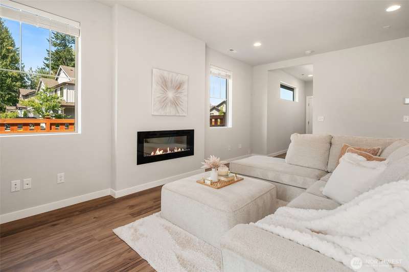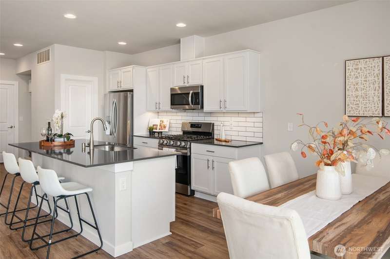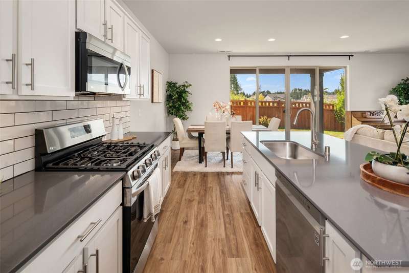 Beautiful corner lot townhouse with prime Tehaleh location. This home is the Charleston floorplan, the largest floorplan that Conner Homes built in Tehaleh! Open-concept kitchen and living area on the main level, perfect for entertaining. . Modern and sleek kitchen with quartz counter tops, huge island, subway tile backsplash and white soft-close cabinets. Walk-in pantry and stainless-steel appliances. The huge primary bedroom boasts a walk-in closet, and oversized ensuite. AC for comfort during Summer. Double sided sliding doors lead to the covered patio and grassy yard and raised garden beds. Walking distance to Post & Pour Cafe, Donald Eismann Elem School, The Edge skate park and Sprouts Holler Playground.