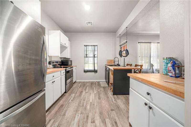 Move in ready! This beautifully remodeled home has three bedrooms, two baths, with a gorgeous modern farmhouse feel! Step into the adorable kitchen featuring butcher block countertops and a kitchen island! Located on a spacious corner lot with covered parking, concrete sidewalks, and lots of yard space, plus very convenient to shopping!