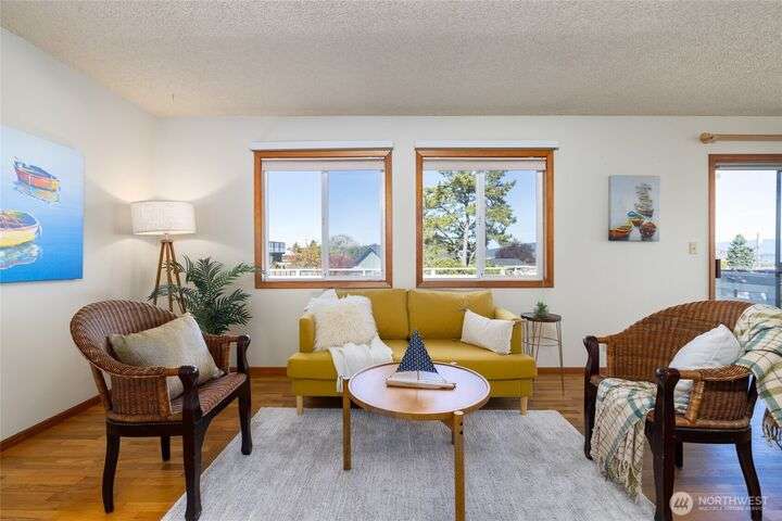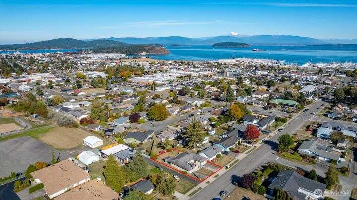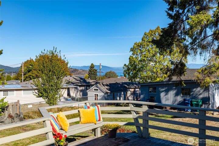 Charming Anacortes home that perfectly blends comfort, style, and convenience. Warm hardwood floors flow throughout two inviting living areas, centered by a cozy fireplace. The spacious primary suite features a walk-in closet and full bath for a touch of privacy and ease. Step outside to a large backyard with a beautiful mahogany deck—ideal for morning coffee or summer gatherings while enjoying views of the water and Mt. Baker. Nestled in a friendly neighborhood close to schools, parks, and town amenities—this is the perfect place to put down roots and enjoy the Anacortes lifestyle.