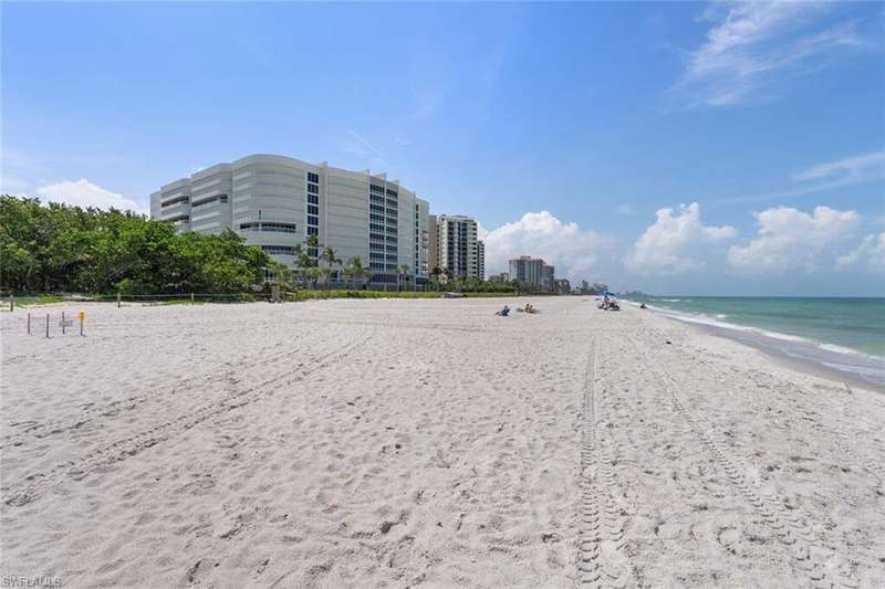 Available: September-December 2026. Discover the ultimate coastal living experience in the ONLY 3 BEDROOM condo available at Vanderbilt Towers! This luxury residence is surrounded by water, boasting breathtaking views of the Gulf of Mexico, the Bay, and the Marina, all with direct Gulf access. Just steps from your door, immerse yourself in the magnificence of one of the world's most beautiful beaches. Inside, you'll find a bright and open floorplan where the kitchen seamlessly flows into the dining area and the spacious living room. These spaces extend onto a screened lanai, offering gorgeous views and spectacular sunsets. This turnkey condo comes fully furnished, including an extra storage room across the hall stocked with beach equipment and even two bikes for your enjoyment. Location is prime, all within walking distance to Naples' top destinations, including the Ritz Carlton, the Turtle Club, and LaPlaya Beach and Golf Resort. Plus, you're only 20 minutes away from the acclaimed 5th Avenue where you'll discover sumptuous dining options, luxe boutiques, and entertainment for the entire family. The community offers fantastic amenities such as a heated pool, picnic, and BBQ area, ensuring a relaxing beachside lifestyle.