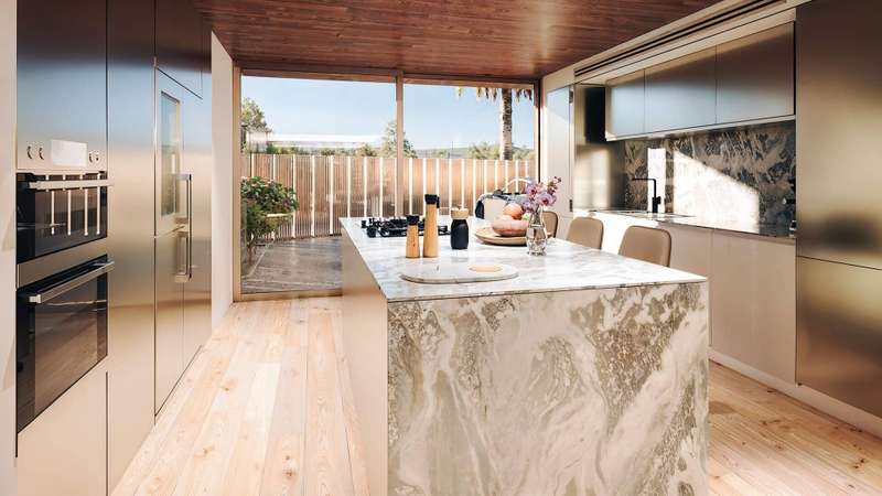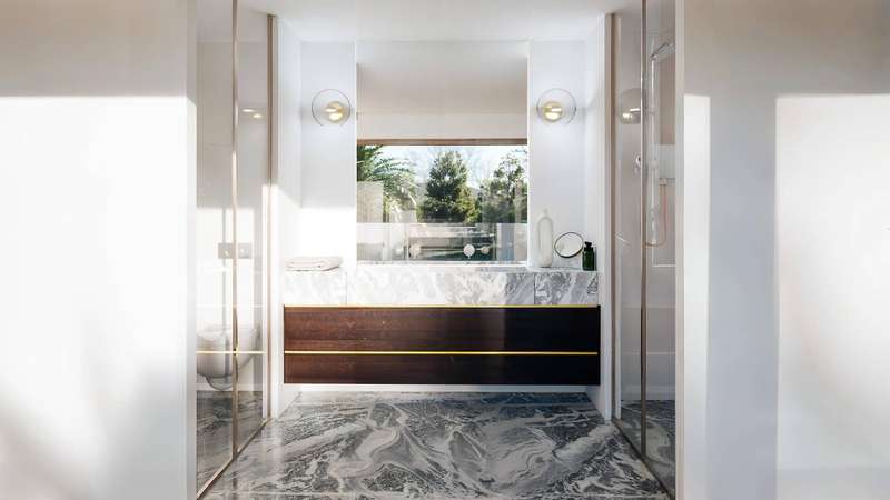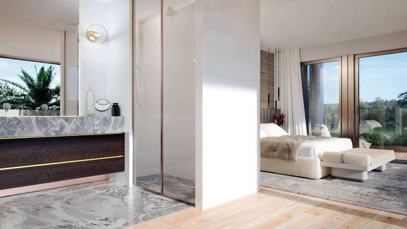 Welcome to the project, that sets a new standard for luxury villas in the area, showcasing a perfect blend of quality and innovation. These villas are designed to be spacious, airy, and comfortable. They consist of two large, overlapping volumes that create inviting shaded porches and terraces. The design, featuring wood-panelled exteriors, includes large floor-to-ceiling windows that allow plenty of natural light and offer beautiful views. With a contemporary style, the residences include expansive wrap-around terraces and natural wood finishes that blend seamlessly with the surrounding landscape, embodying the indoor-outdoor lifestyle typical of Southern Spain. The open plan layout makes it easy to move through the space, and the large windows fill the living areas with natural light, framing lovely garden views from every angle. These villas are carefully designed to be peaceful retreats where residents can relax and enjoy modern comforts. The ground floor living area is designe