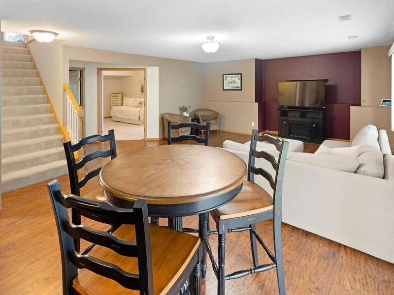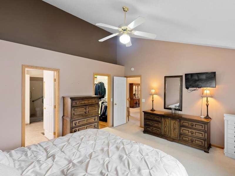 Beautiful end-unit townhome is ideally designed for one-level living. This lovely home features four bedrooms, three bathrooms and two car-attached garage. The vaulted living room features a gas fireplace, perfect for cozy evenings. . Adjacent to the living area, a four-season sun porch offers a bright and cheerful spot to enjoy your morning coffee throughout the year. The kitchen features updated Cambria countertops, stainless steel appliances, as well as a brand-new dishwasher. Walk-out basement with nature views, spacious family room, two bedrooms and a dedicated storage room. The storage room was previously used as a woodworking shop and can easily be set up again to suit your needs. Close to shopping, restaurants, and the lake, allowing easy access to local amenities and recreational opportunities.