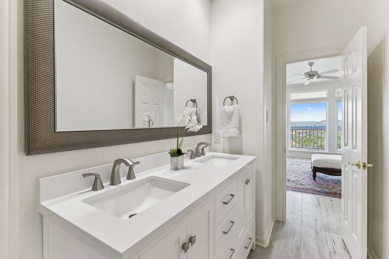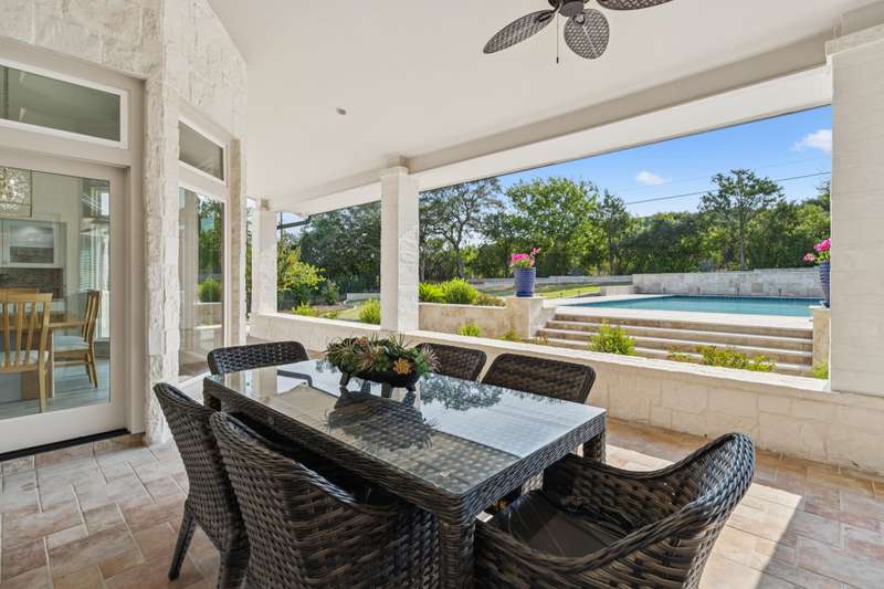 Welcome to this meticulously transformed home, perfectly situated in the heart of The Dominion. Designed for both grand entertaining and a private retreat, this residence blends modern sophistication with timeless elegance. Step inside to soaring ceilings, abundant natural light & immediate views of the outdoors. Walls of glass open seamlessly to a resort-style living space featuring an outdoor fireplace, covered patios & panoramic city views. Anchoring the property is an award-nominated 40' x 20' Cody lap pool with elegant travertine decking & dramatic lighting, a true center piece for entertaining day or night. The modern kitchen offers custom cabinetry, granite countertops & updated appliances, while Italian porcelain tile flooring flows throughout. Every bathroom has been elegantly redesigned with timeless finishes. Fresh paint, enhanced architectural lighting inside and out & energy-efficient Low-E Pella windows add comfort and peace of mind. Terraced balconies span over 700 square feet on two levels, providing the perfect setting for phenomenal views for sunset gatherings or quiet morning sunrises. A versatile 705 sq. ft. guest apartment with full bath, set privately above the garage, is ideal for family, an executive office, or an au pair suite. Designed by top-rated landscape architect Bronson Blue, the tree-lined grounds offer fabulous curb appeal and unmatched privacy, with direct adjacency to Camp Bullis & sweeping hilltop views. This is a rare opportunity to own a home that is move-in-ready, balancing prestige, craftsmanship & a lock-and-leave lifestyle in The Dominion. - 10/30/2025 3:16:42 AM