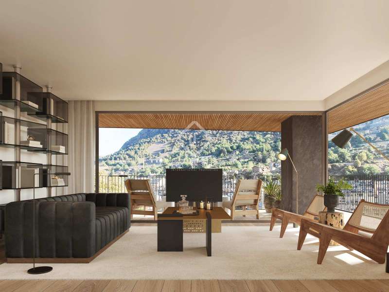 Lucas Fox is pleased to present Phase II of Valley View, a fabulous new build development , made up of three towers with fifteen floors each, perfect for families. The development is located in a natural setting in Andorra, surrounded by mountains, but with all the amenities of the town of Escaldes within reach. It also stands out for offering families a sustainable and ecological space, as well as a private one. This apartment features a modern design, with open, spacious and bright spaces. In addition, the decoration in neutral tones maximizes the feeling of spaciousness, while the large floor-to-ceiling windows that lead access to the terrace allow the entry of abundant natural light and offer unique panoramic views. First, we find an entrance hall that leads us to a spacious living-dining room with access to a 17 m² terrace, perfect for enjoying the beautiful views and a fully equipped open kitchen. The night area is made up of three double bedrooms, one of them with a private bathroom bathroom. To complete this area, we have a full bathroom that serves the other rooms and a laundry room room. The property has excellent finishes and qualities. It includes a reinforced door, pre-installation of a video surveillance system, porcelain stoneware floors and built-in wardrobes, among others. The kitchen comes fully equipped, with a central island or bar, Neolith or Silestone countertop, Santos brand furniture and Siemens brand appliances : induction hob, oven, microwave, refrigerator and dishwasher. For maximum comfort, it benefits from a centralized air conditioning system through ducts, underfloor heating and an air renewal system; all combined with windows and glass with aluminum carpentry with thermal break, with triple glazing and double air chamber to avoid temperature leaks. The development offers its owners parking spaces and a storage room. In addition, there is a heated pool surrounded by gardens, a solarium with views of the surroundings and a gym. Please contact for more information.