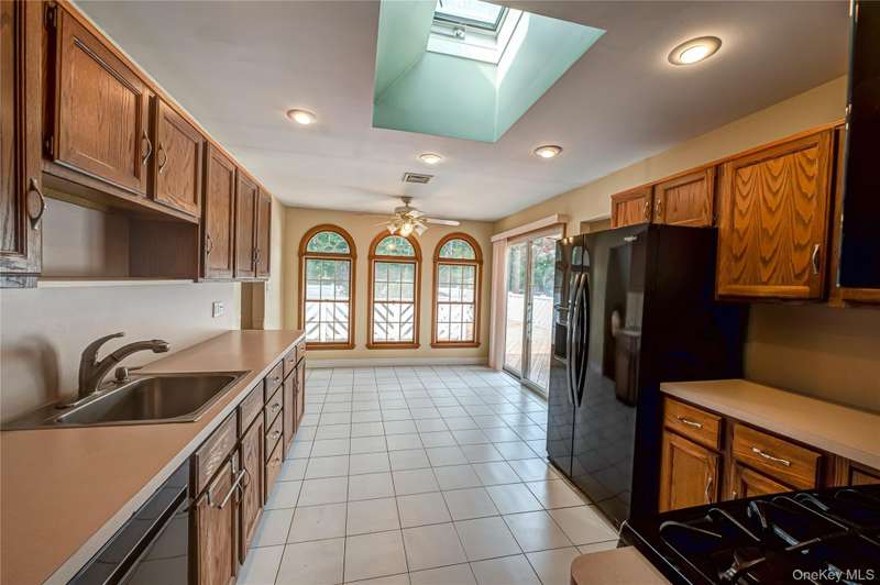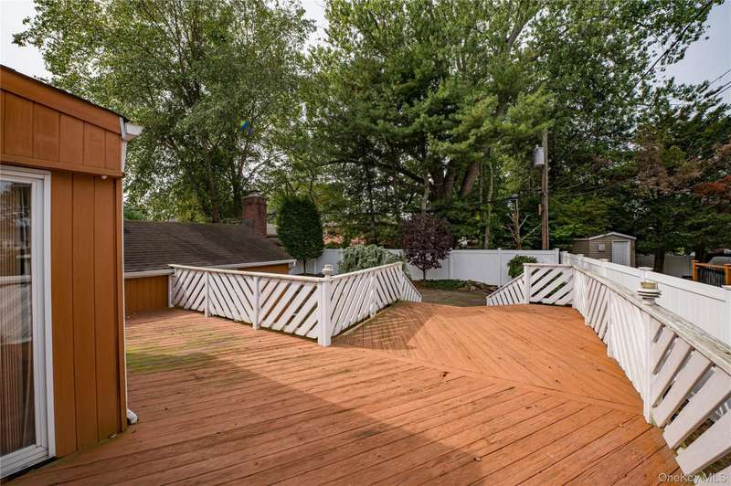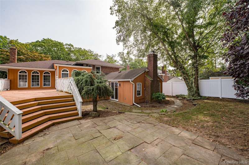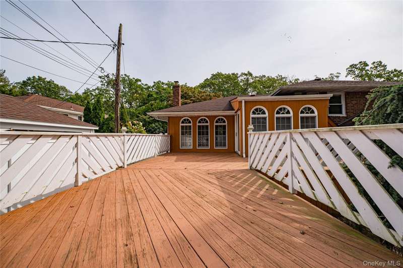 Lovely split level home located in Seaford Manor. Beautiful oak floors through out. Fabulous expanded great room 15' x 30 with brick, wood burning fireplace. Spacious kitchen extended 9' for sunny breakfast room or dining area, 4 bedrooms and 3. full baths. Arched windows, spacious deck and private yard.