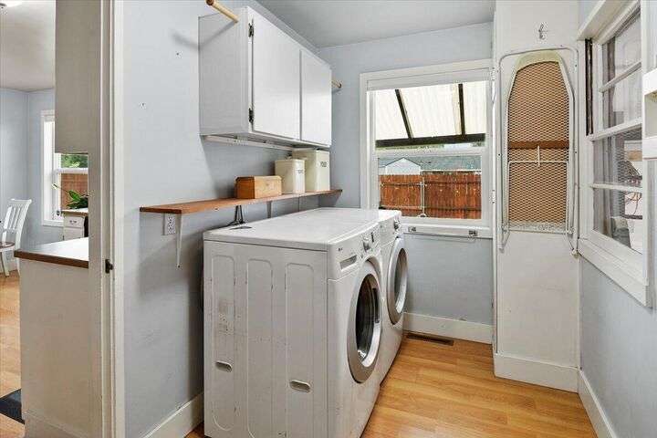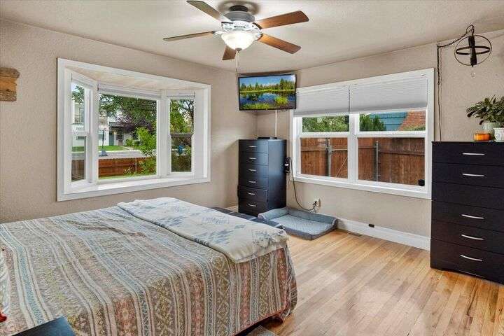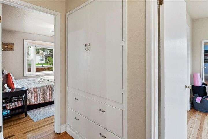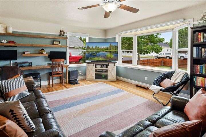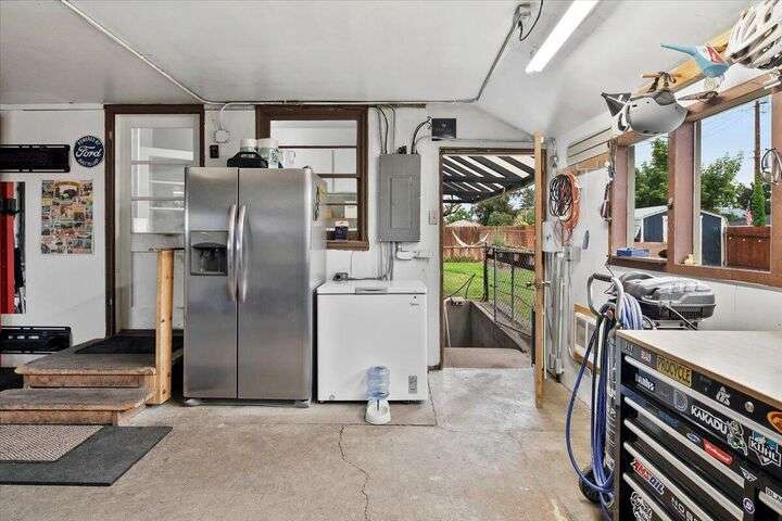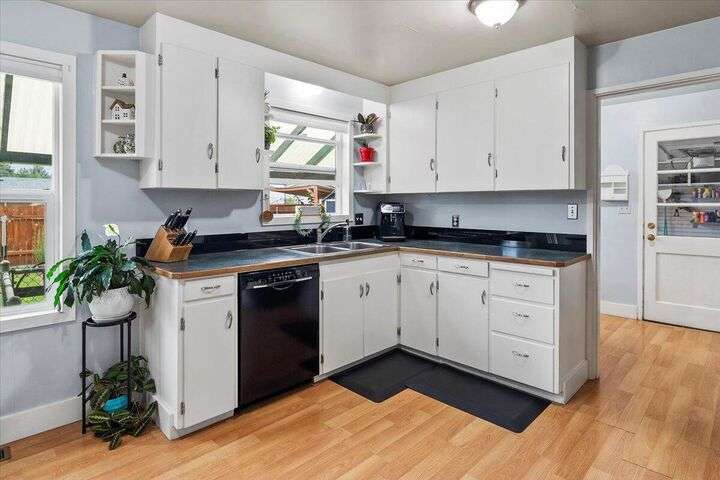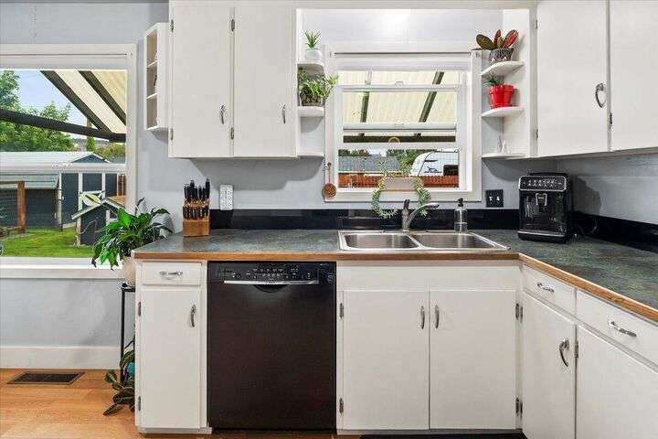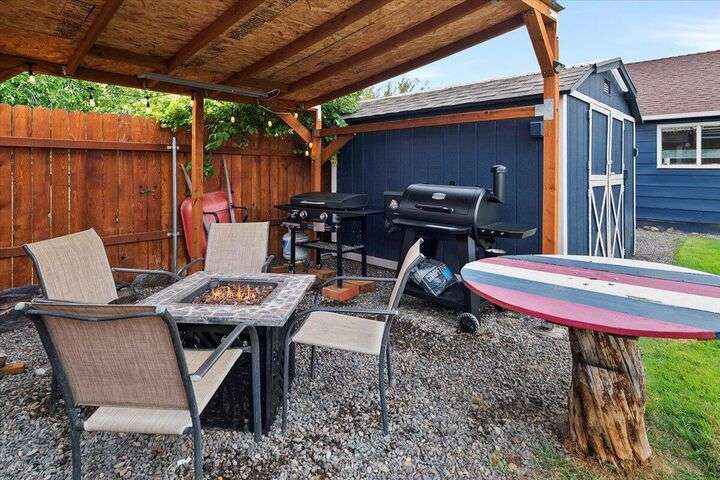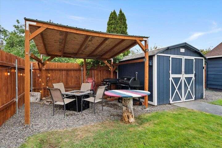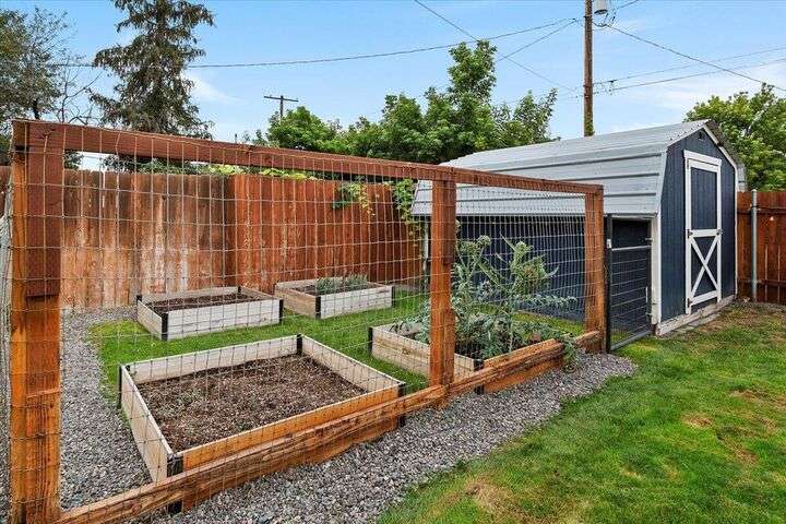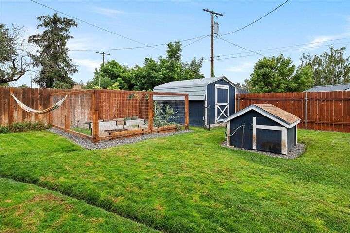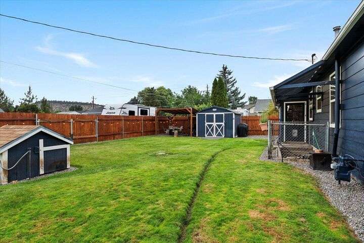 Charming 2-bedroom, 1-bath bungalow on a spacious .21-acre lot in the heart of Prineville. Offering 1,024 sq ft of single-level living, this home features original oak floors, a bright bay window, coved ceilings, and custom built-ins throughout. The kitchen includes a stainless steel gas range, breakfast nook, and large walk-in pantry. Enjoy a fully fenced yard with mature fruit trees, raised garden beds, pergola, and underground sprinklers fed by a private well. Alley access provides RV parking with full hookups, plus two storage sheds (one with power) and a basement for extra storage. Updated exterior paint (2021), vinyl windows, and an attached garage add convenience. Close to schools, downtown and the fairgrounds - this one won't last!