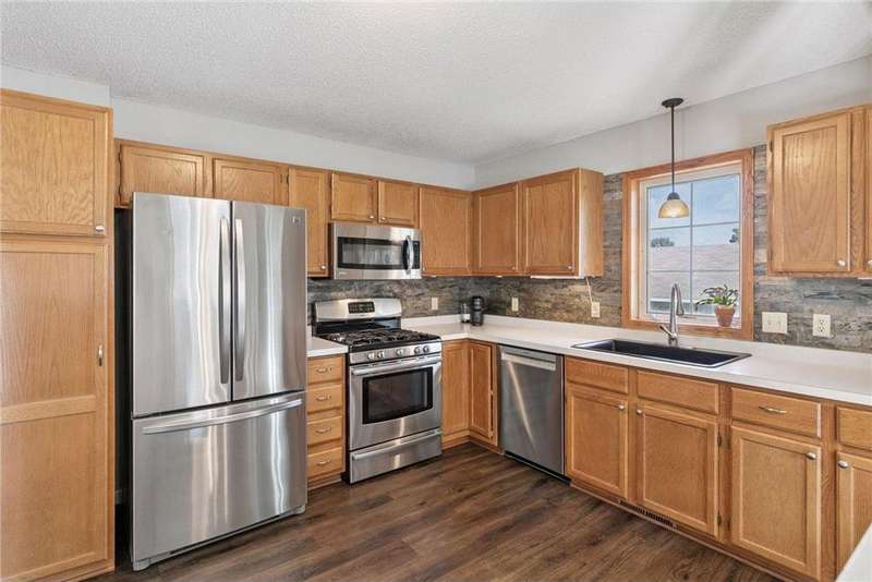 This beautiful home is designed with comfort and convenience! This home boasts a desirable open floor plan that makes everyday living and entertaining a breeze. The kitchen brings with it an abundance of cabinet and countertop space, stainless steel appliances, a stylish tile backsplash, and a versatile area perfect for casual dining, a coffee bar, or added storage. The kitchen flows seamlessly into the dining and living areas, with sliding glass doors that open to the deck—ideal for indoor-outdoor living. Main level BR's include the primary suite with a walk-in closet and a full bath completes the main level. The lower level offers endless possibilities: the large family room is perfect for movie nights, game days, or hosting friends; the flex space works beautifully as a home office, workout space or kids play area; and a generously sized bedroom that could easily be reimagined into two bedrooms. A second full bath on this level adds extra convenience. Step outside and enjoy relaxing on the deck and patio overlooking the fully fenced backyard or get active on the private sport court. And with the desirable 3-car garage, you’ll have plenty of room for vehicles, storage, and hobbies. Move-in ready and thoughtfully designed for today’s lifestyle, this home truly has it all—space, function, and fun!