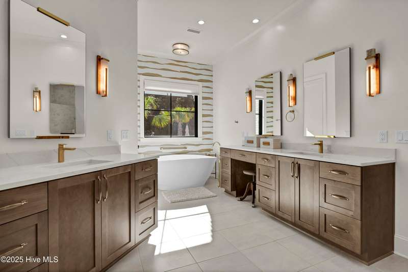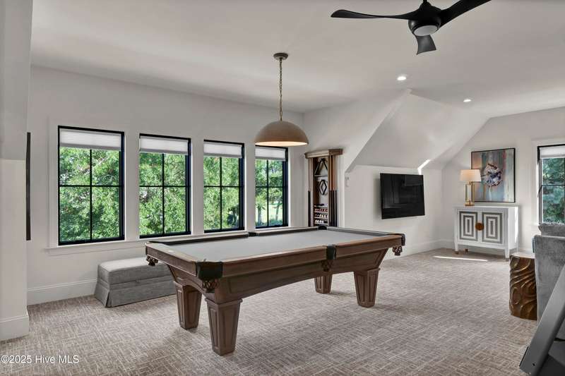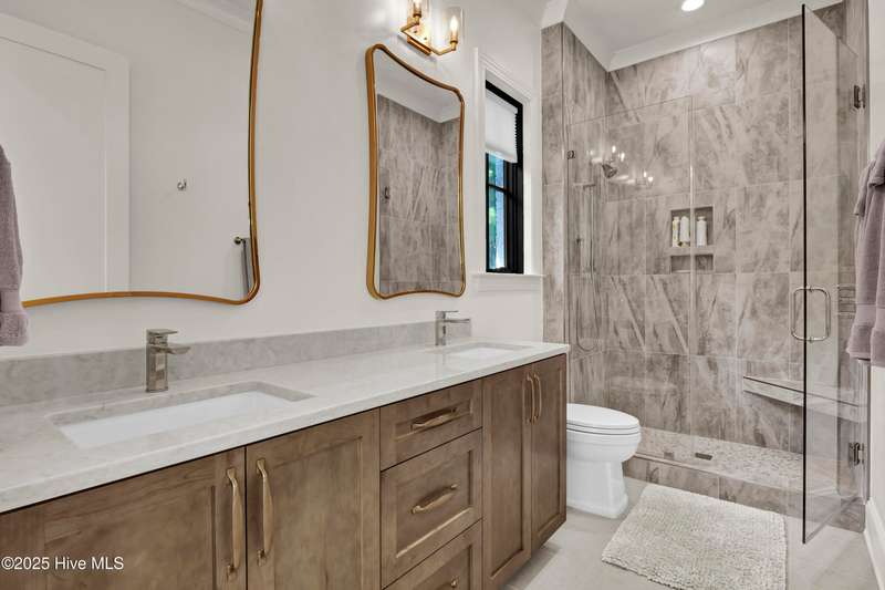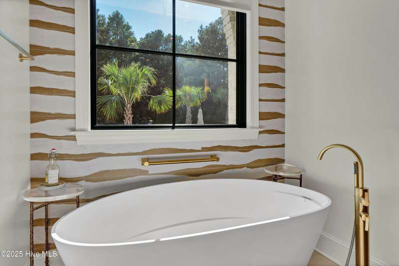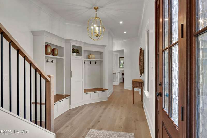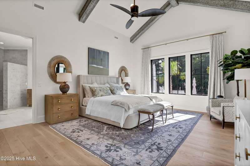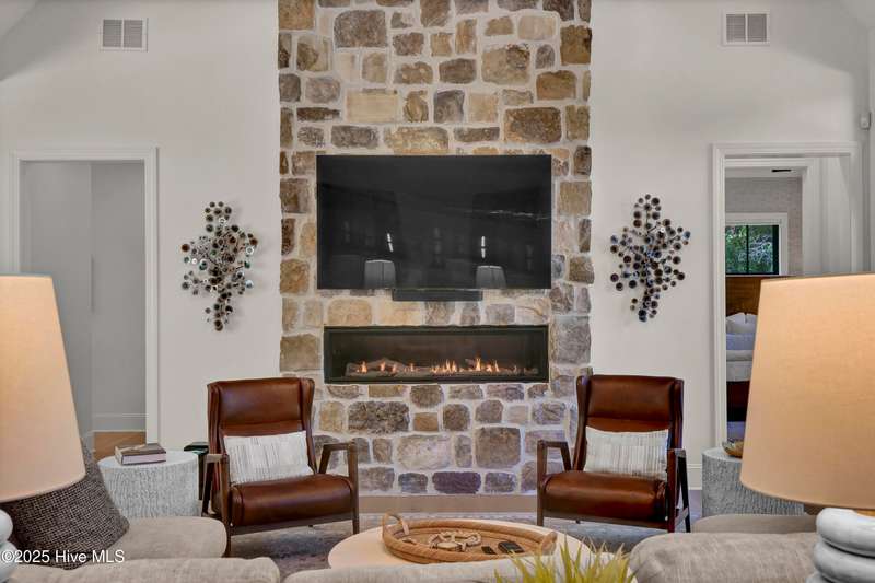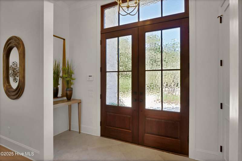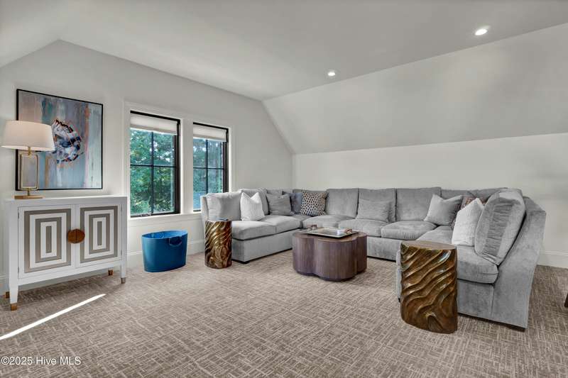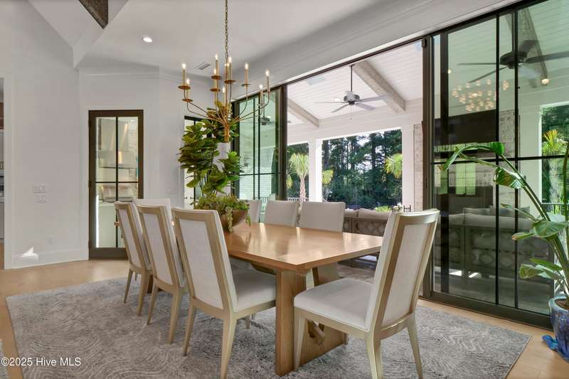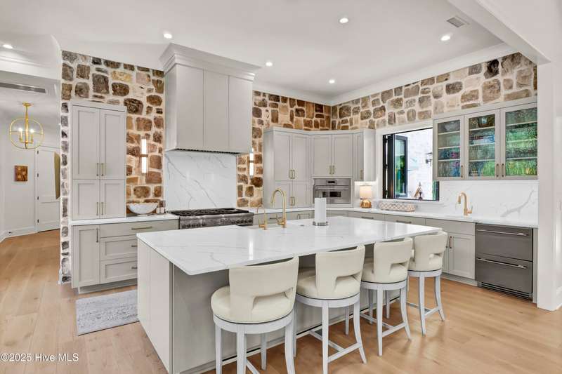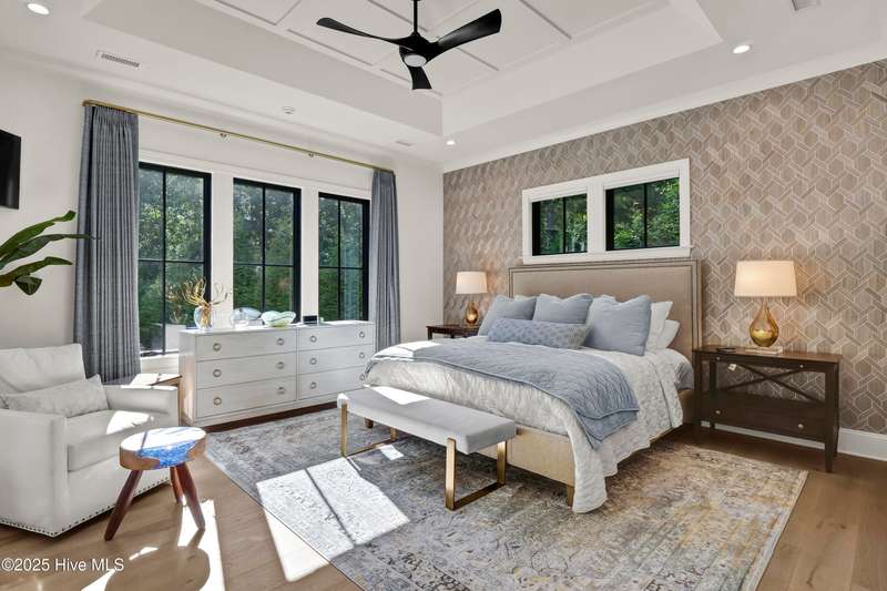 Combine a one of a kind location in the heart of Landfall with a quality built, nearly new, modern French country design with impeccable features and you will arrive at the secluded address of 1800 Newington Court.A quiet cul-de-sac with only 5 houses on the street and surrounded by over 300 acres of wooded conservation preserve, this thoughtfully designed, custom built residence by Mac Braxton of RMB Designs was completed in 2024 and features over 4500 square feet; including 3800 on the first floor alone. Few houses will stun you like this one! The low maintenance oversized Riviera all brick exterior and black clad Marvin windows give the home a stately presence with a circular driveway and lush tropical landscaping. As you enter the front door you will be amazed by the open great room with vaulted beamed ceiling; the chef's kitchen with huge quartz island and handsome stone accent wall in the kitchen and opposite fireplace wall. Custom cabinets from Hollingsworth and Thermador stainless appliances including a hybrid natural gas and induction cooktop, double ovens and multiple beverage drawers are the dream of every cook!The first floor features engineered hardwood flooring throughout including the 3 first floor bedrooms. The 2 guest bedrooms each have private ensuite baths on the far right side of the house and the 21x16 vaulted and beamed ceiling primary suite on the opposite side to provide everyone with privacy. Each bedroom has walk-in closets and custom designed shelving systems. There is additional 700 sq ft upstairs in a 29x21 bonus room with full bath over the 3 car garage. The garage also has a work shop and includes a half bath that opens to the backyard for easy pool access. On the first floor, the primary suite and one of the guest suites has access to the heart and soul of the home...over 700 sq ft of covered open air porch with vaulted ceilings and skylights; double sliding glass doors to allow seamless indoor-outdoor living and an outdoor pass thru window from the main kitchen. All overlooking the fenced, private backyard oasis complete with heated gunite saltwater pool. Silver travertine extends from the porch around the pool decking leading to a secluded area for a firepit. You will be the envy of the neighborhood with the perfect spot for elegant entertaining and peaceful relaxation. A wood burning fireplace with a gas starter will extend the seasons and welcome cool fall evenings for catching your favorite football team. Watching the Masters from here might just be heaven on earth! With frontage on Landfall's Pete Dye designed golf course (par4, 5th hole) and surrounded by conservation acreage, this home offers both privacy and views. Enjoy the sidewalk that extends from the cul-de-sac and joins with miles of nature trails to enjoy Landfall's flora and fauna. Please contact Vance Young for a complete list of features including whole house generator, 2 tankless gas fired Rinai water heaters, spray foam insulation in exterior walls and roof and a large walk-in attic. Seller cannot close before 1/13/26.