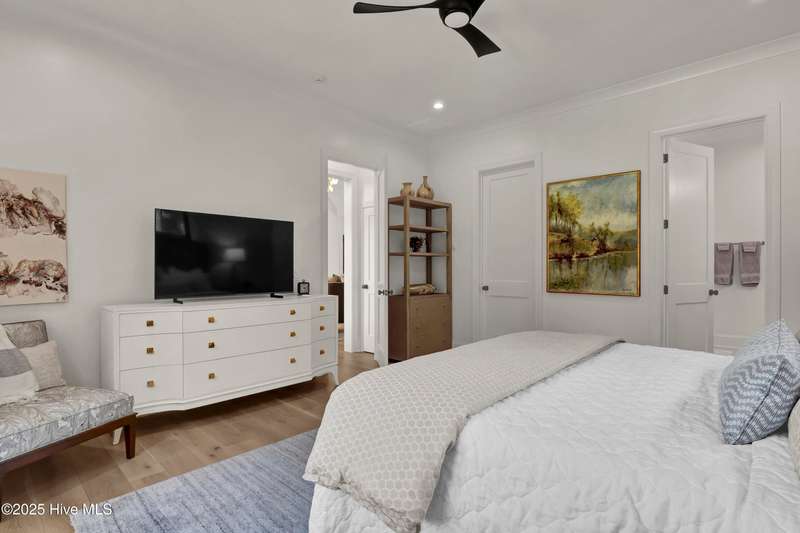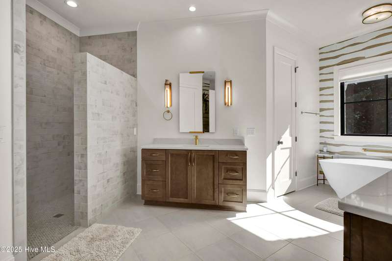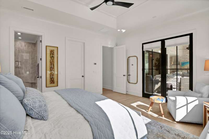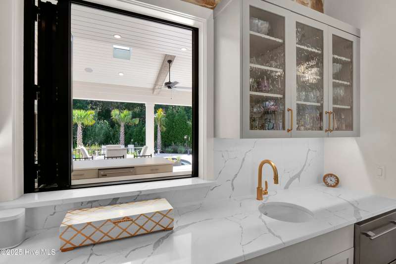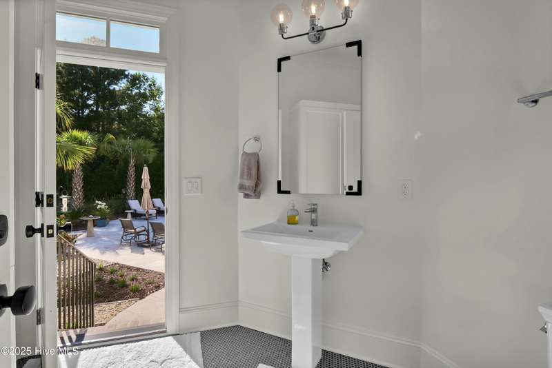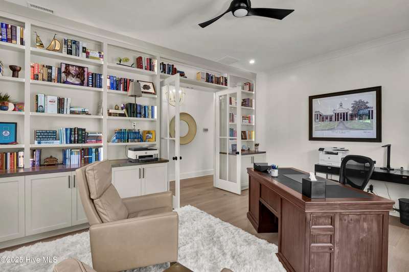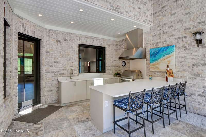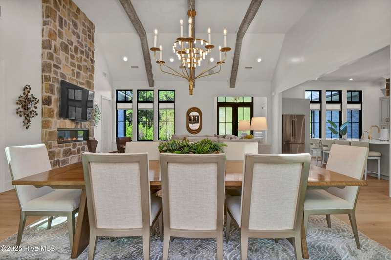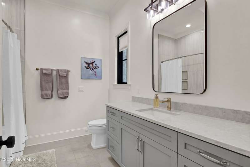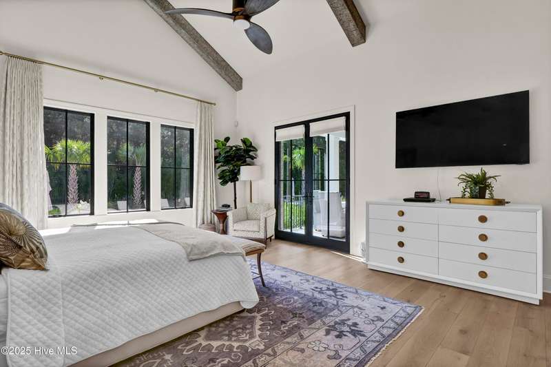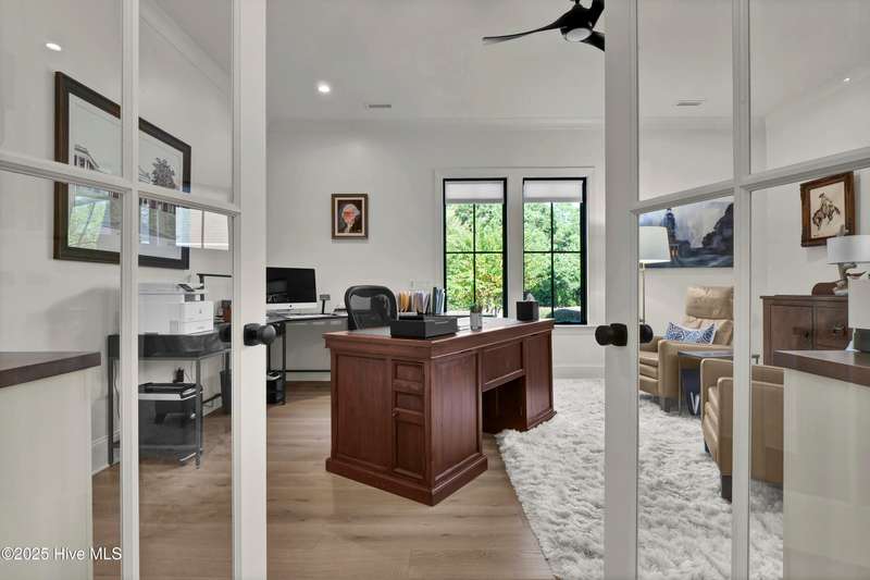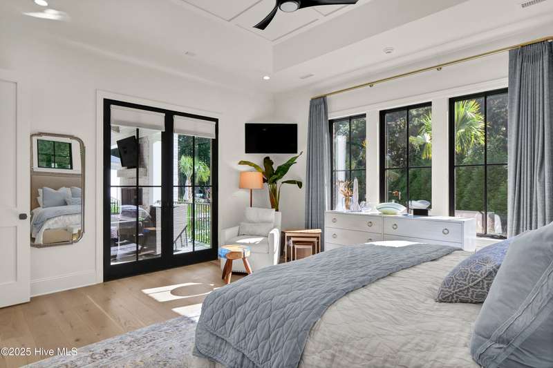 Combine a one of a kind location in the heart of Landfall with a quality built, nearly new, modern French country design with impeccable features and you will arrive at the secluded address of 1800 Newington Court.A quiet cul-de-sac with only 5 houses on the street and surrounded by over 300 acres of wooded conservation preserve, this thoughtfully designed, custom built residence by Mac Braxton of RMB Designs was completed in 2024 and features over 4500 square feet; including 3800 on the first floor alone. Few houses will stun you like this one! The low maintenance oversized Riviera all brick exterior and black clad Marvin windows give the home a stately presence with a circular driveway and lush tropical landscaping. As you enter the front door you will be amazed by the open great room with vaulted beamed ceiling; the chef's kitchen with huge quartz island and handsome stone accent wall in the kitchen and opposite fireplace wall. Custom cabinets from Hollingsworth and Thermador stainless appliances including a hybrid natural gas and induction cooktop, double ovens and multiple beverage drawers are the dream of every cook!The first floor features engineered hardwood flooring throughout including the 3 first floor bedrooms. The 2 guest bedrooms each have private ensuite baths on the far right side of the house and the 21x16 vaulted and beamed ceiling primary suite on the opposite side to provide everyone with privacy. Each bedroom has walk-in closets and custom designed shelving systems. There is additional 700 sq ft upstairs in a 29x21 bonus room with full bath over the 3 car garage. The garage also has a work shop and includes a half bath that opens to the backyard for easy pool access. On the first floor, the primary suite and one of the guest suites has access to the heart and soul of the home...over 700 sq ft of covered open air porch with vaulted ceilings and skylights; double sliding glass doors to allow seamless indoor-outdoor living and an outdoor pass thru window from the main kitchen. All overlooking the fenced, private backyard oasis complete with heated gunite saltwater pool. Silver travertine extends from the porch around the pool decking leading to a secluded area for a firepit. You will be the envy of the neighborhood with the perfect spot for elegant entertaining and peaceful relaxation. A wood burning fireplace with a gas starter will extend the seasons and welcome cool fall evenings for catching your favorite football team. Watching the Masters from here might just be heaven on earth! With frontage on Landfall's Pete Dye designed golf course (par4, 5th hole) and surrounded by conservation acreage, this home offers both privacy and views. Enjoy the sidewalk that extends from the cul-de-sac and joins with miles of nature trails to enjoy Landfall's flora and fauna. Please contact Vance Young for a complete list of features including whole house generator, 2 tankless gas fired Rinai water heaters, spray foam insulation in exterior walls and roof and a large walk-in attic. Seller cannot close before 1/13/26.